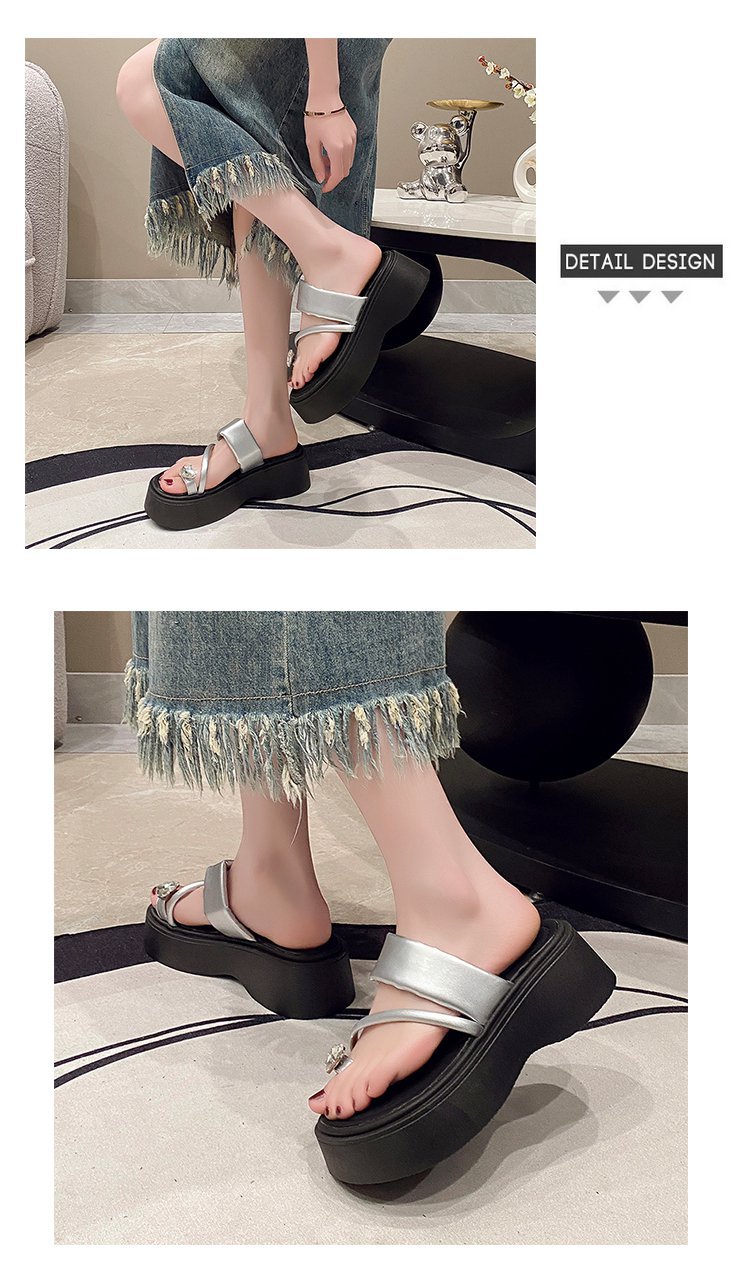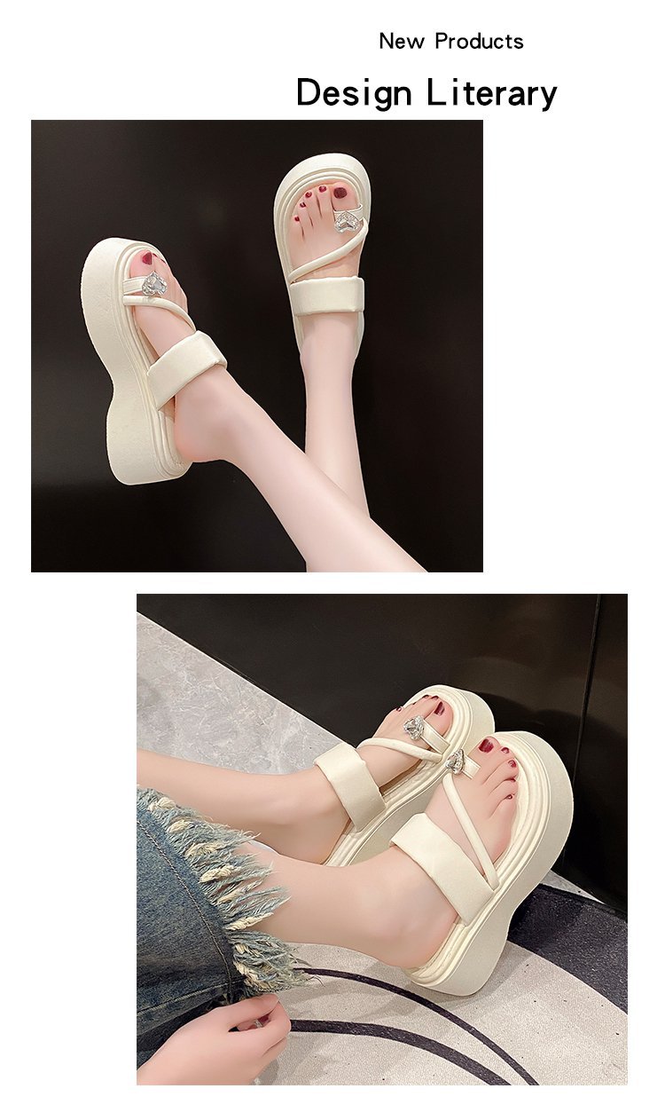 여성 두꺼운 바닥 발가락 샌들과 슬리퍼 2025 년 여름 새로운 요정 스타일 원피스 비치 샌들 슈퍼 인기 슬라이드