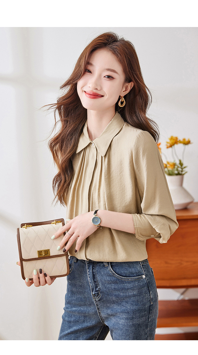 프랑스 여성의 세련된 아름다운 셔츠베이스 셔츠 도매 아우터 착용 배꼽 라이트 익은 긴 소매 셔츠 하이 엔드 탑스토어 가기