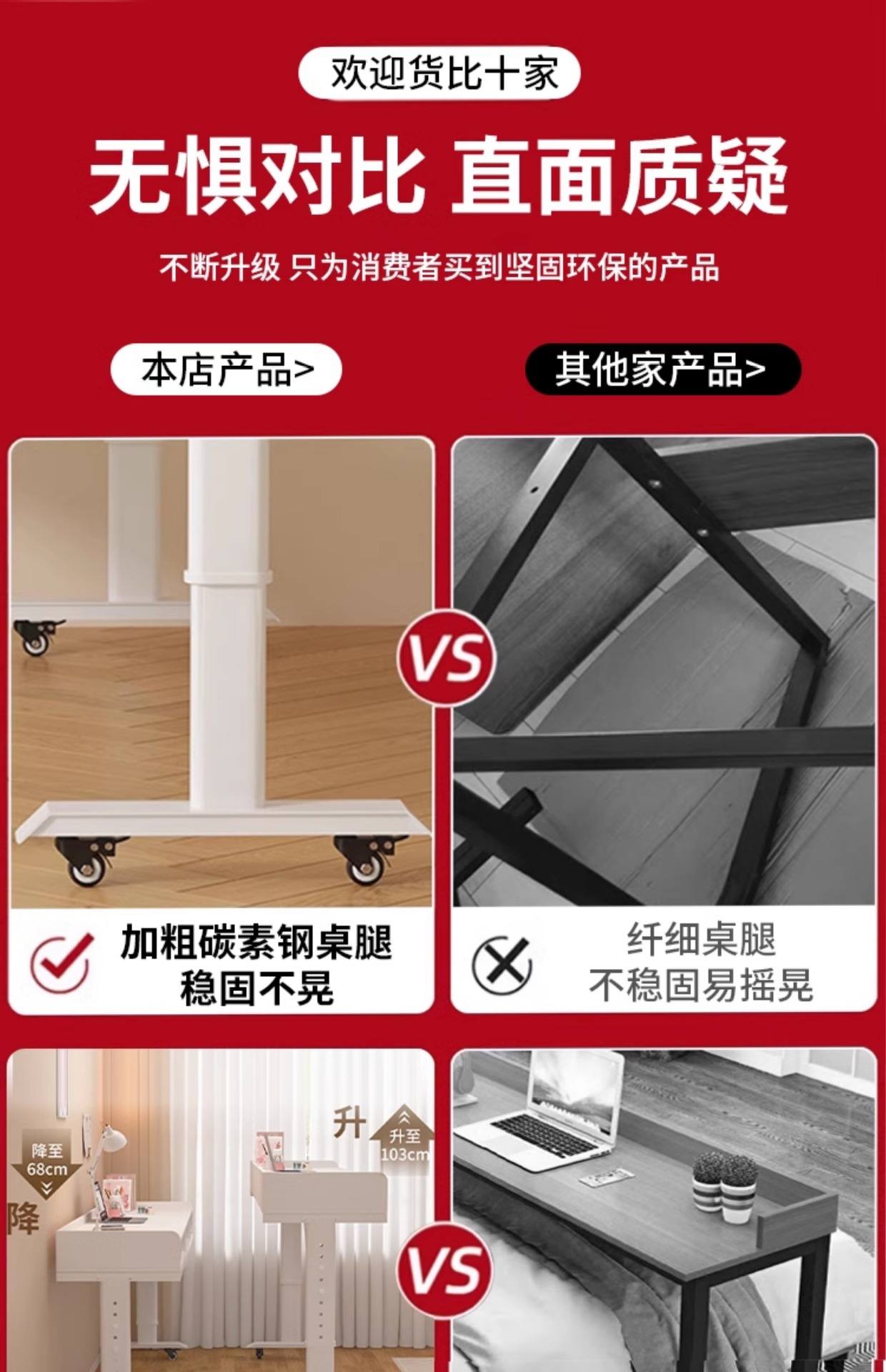 크로스 침대 테이블 이동식 리프팅 테이블 침대 컴퓨터 책상 게으른 연구 책상 단단한 나무 긴 책상 침대 옆 테이블스토어 가기