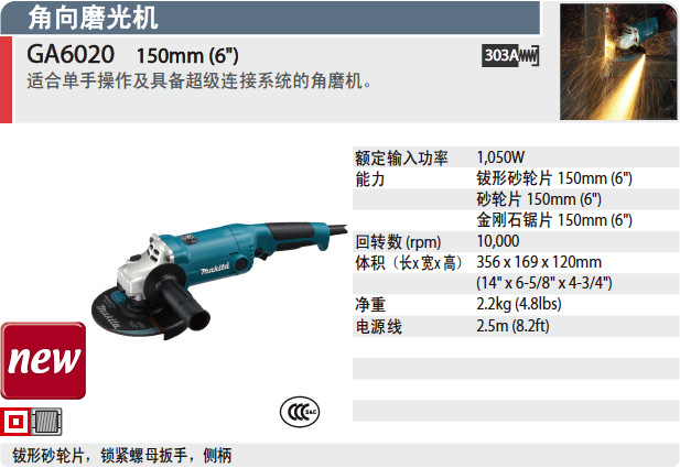 일본 makita Makita GA6010 앵글 그라인더 전기 그라인더 GA6020 강철 금속 연삭 절단기