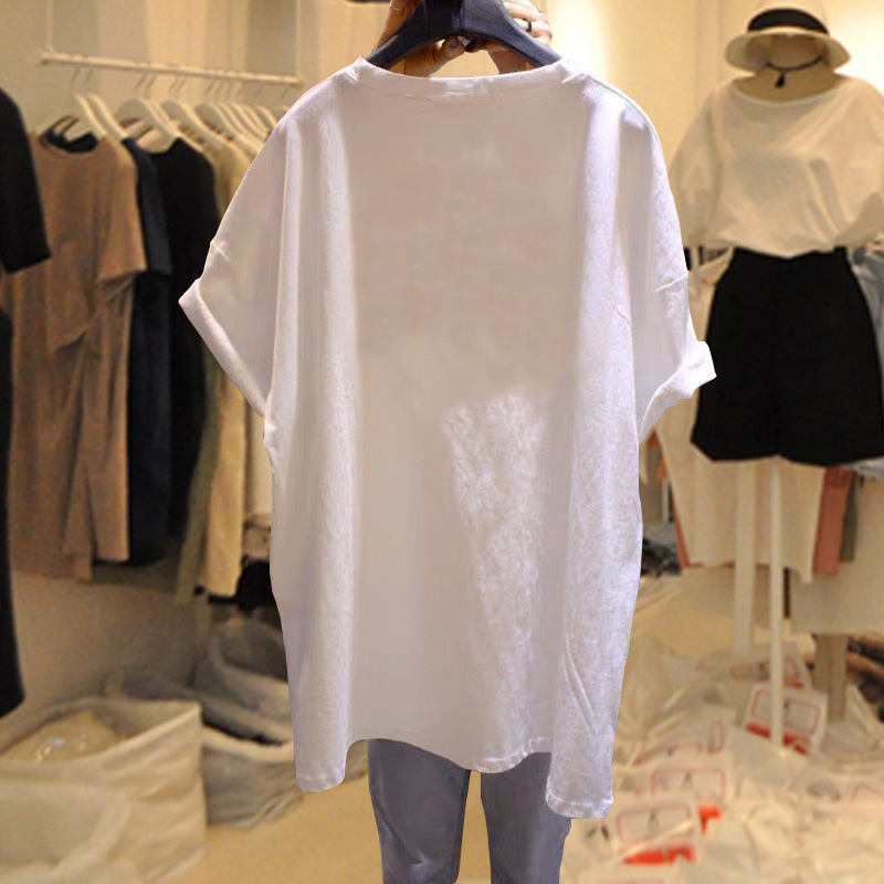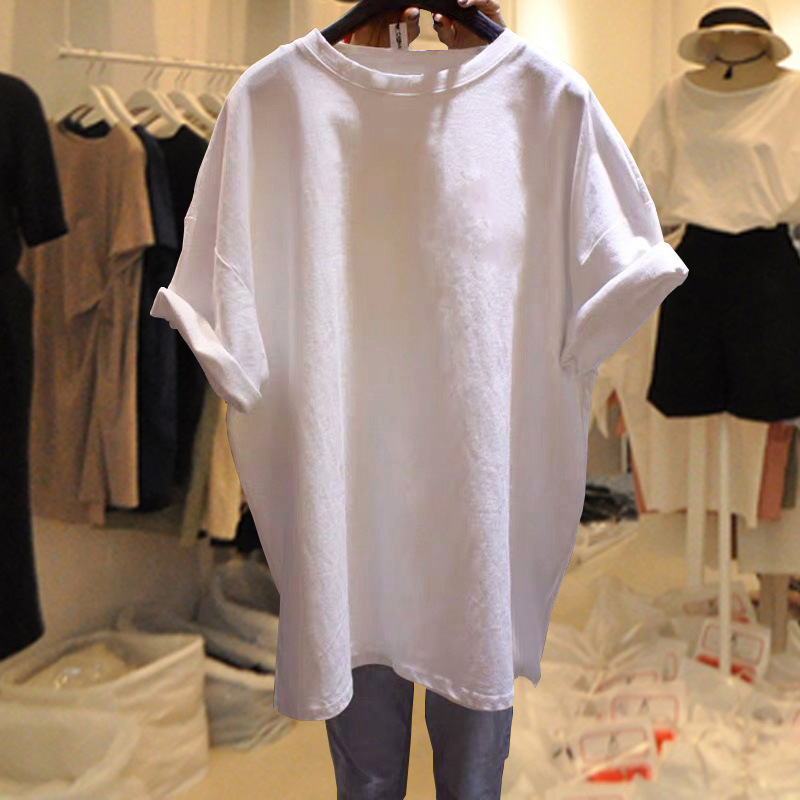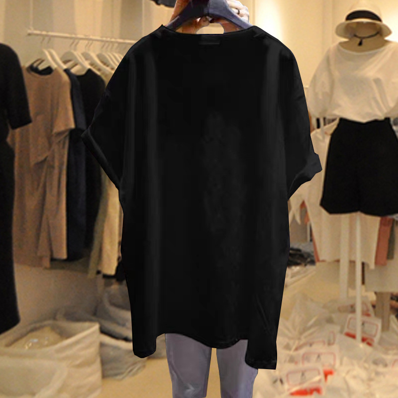 2025 년 봄 여름 새로운 순수 검은 둥근 목 짧은 소매 티셔츠 여성의 느슨한 폭발 새로운 세대의 한국판스토어 가기