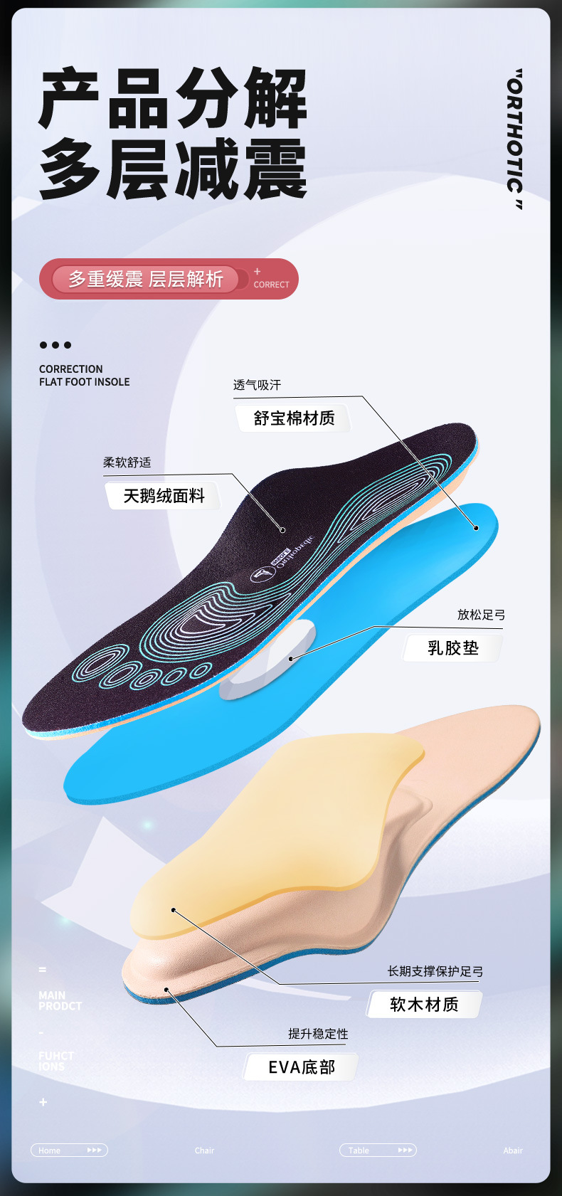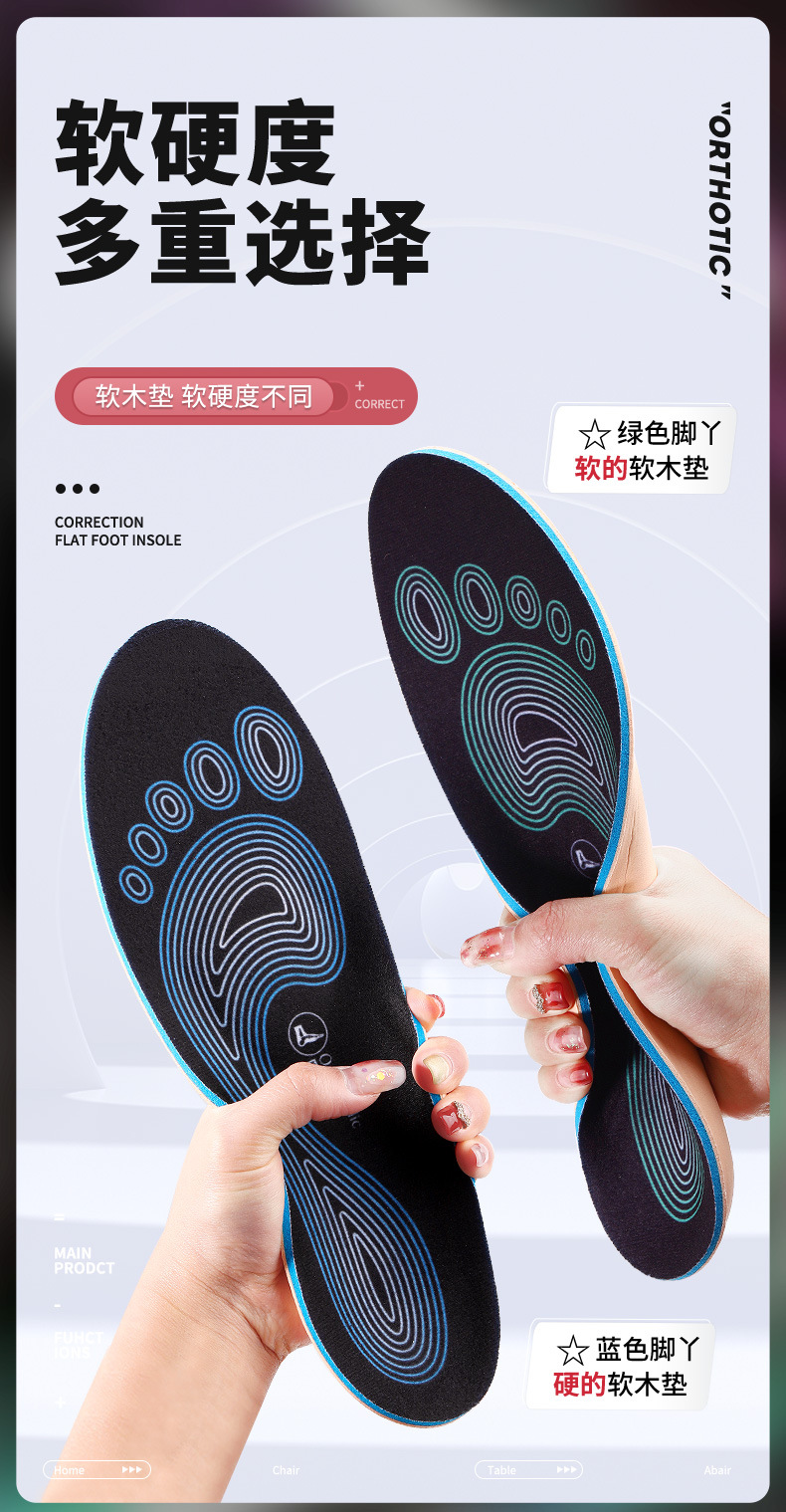 남성과 여성을위한 코르크 플랫 발 교정 깔창 플랫 발 아치 지원 오프셋 플랫 발 정형 외과