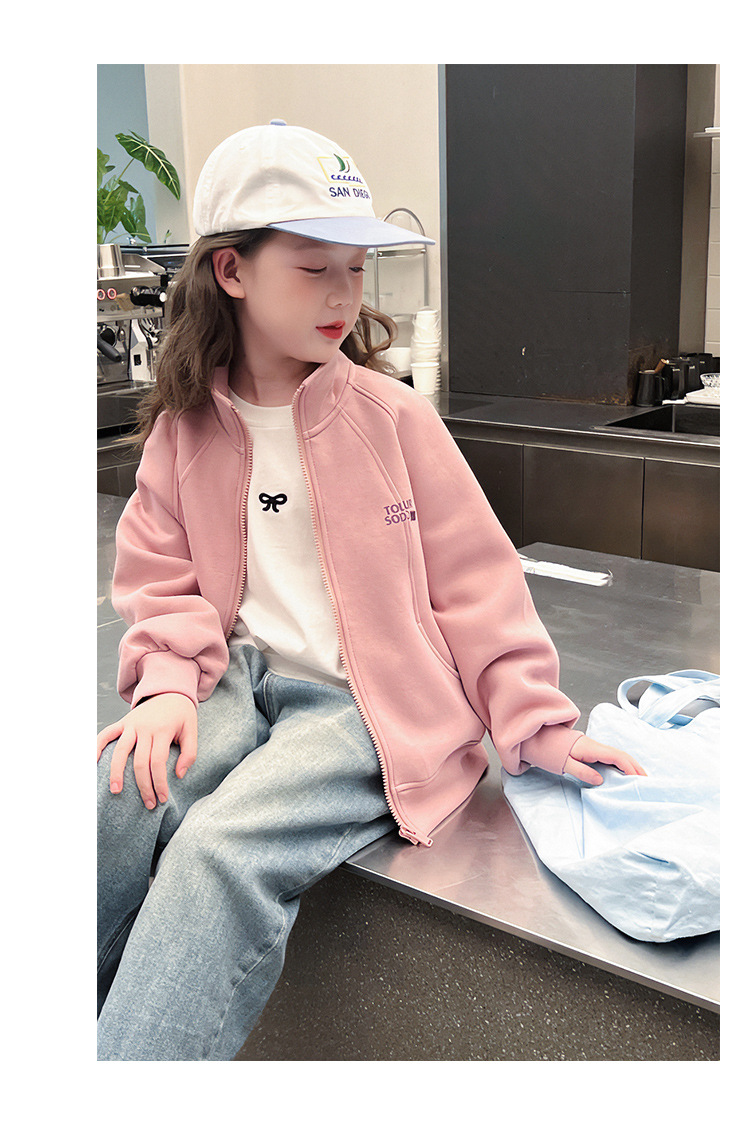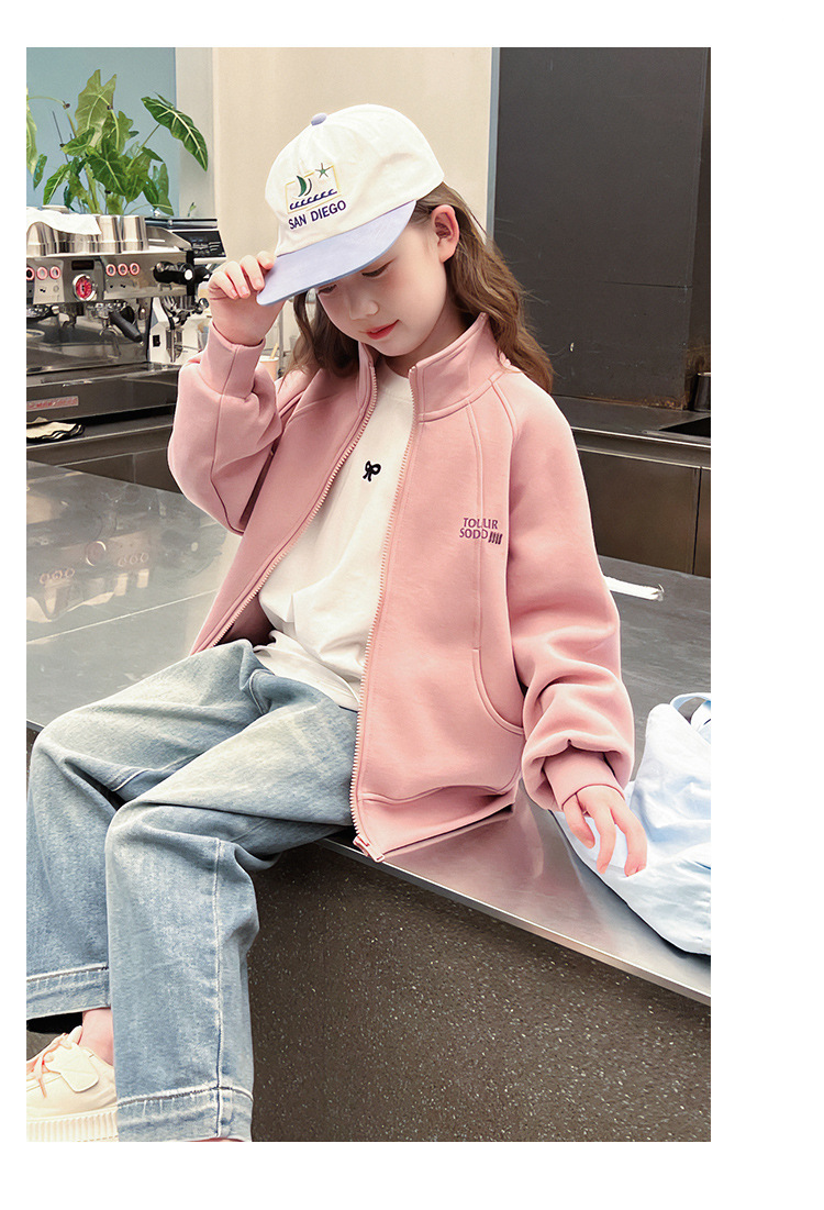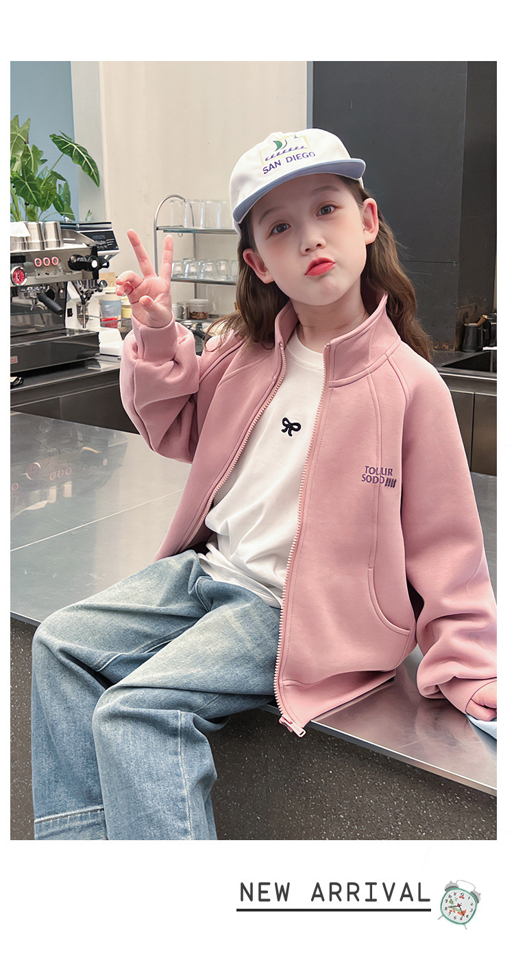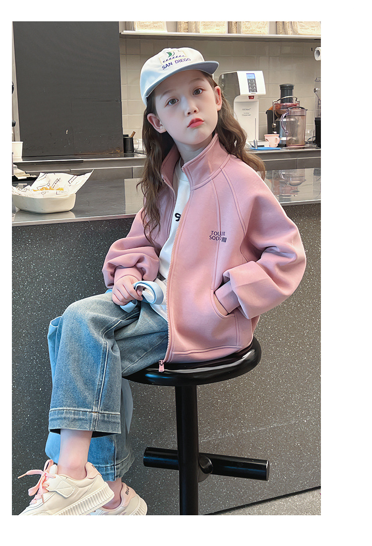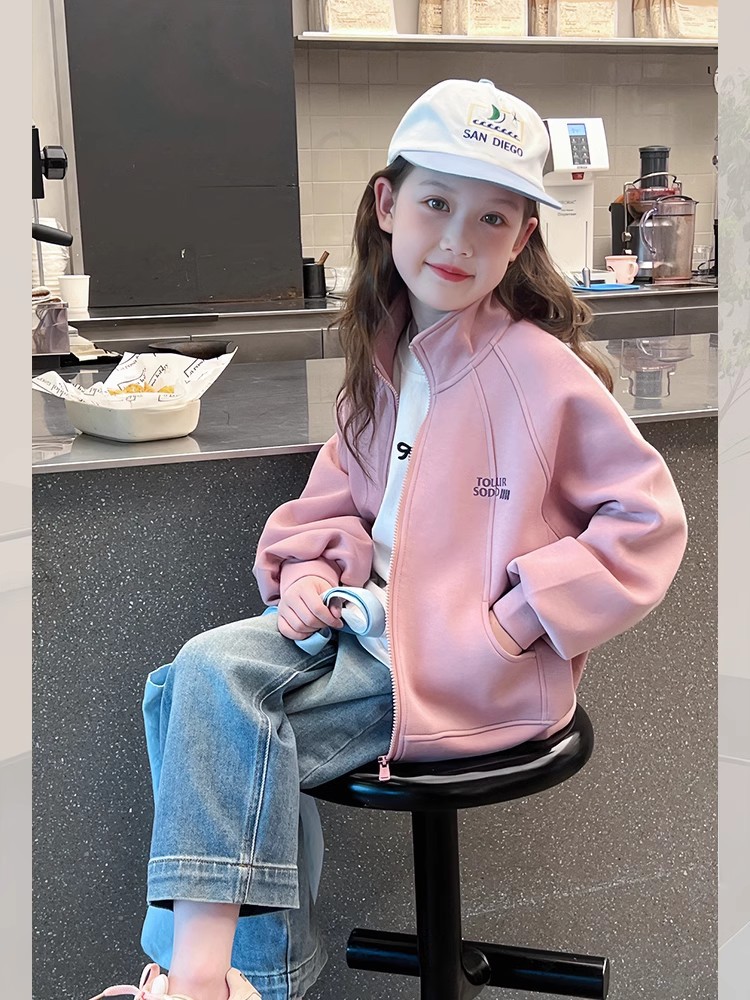 소녀를위한 소녀 세련된 칼라 코트 어린이 긴 소매 카디건 중형 및 대형 아동복 탑 2025 봄과 가을 새로운스토어 가기