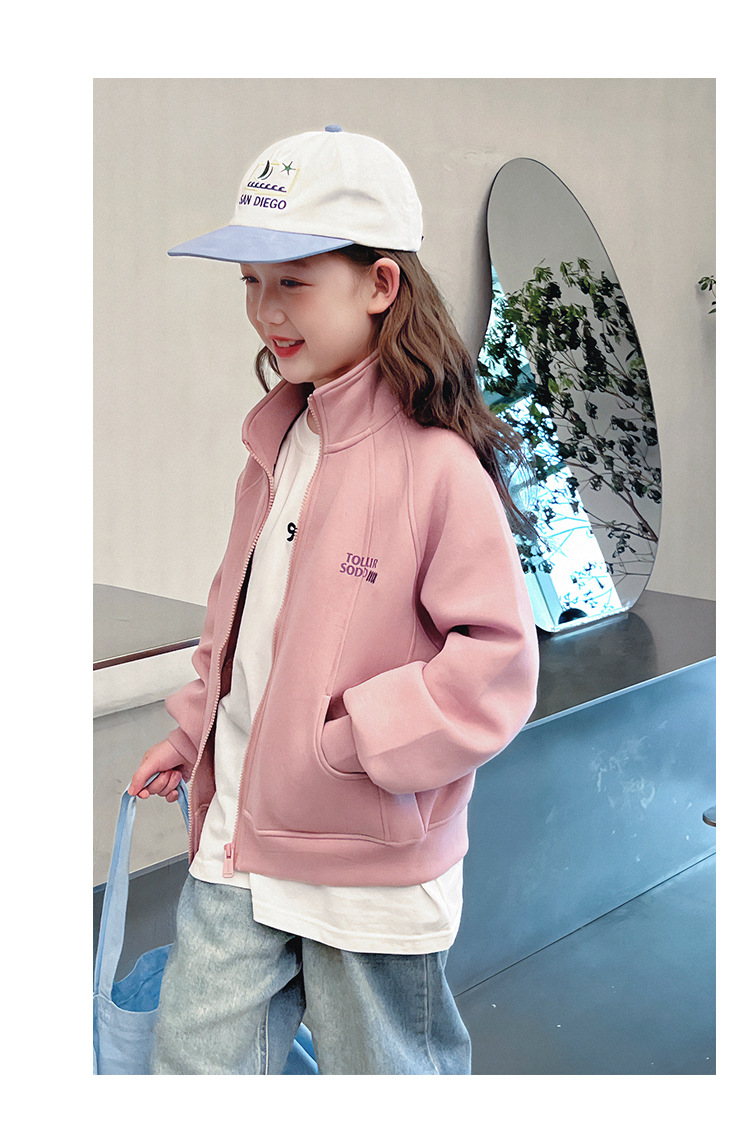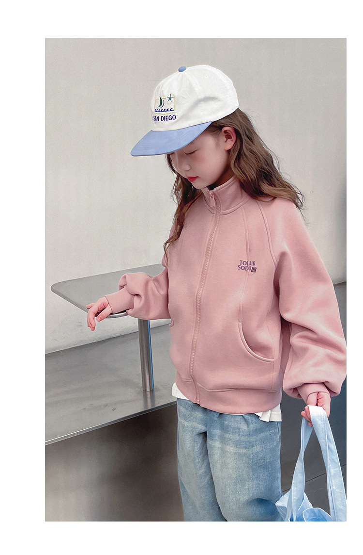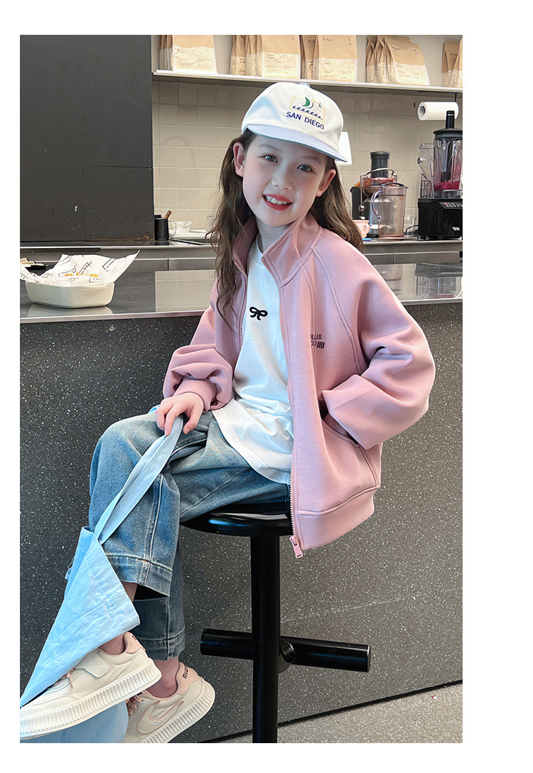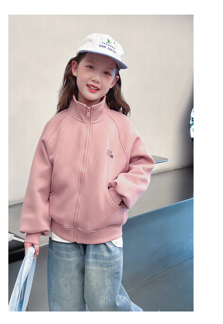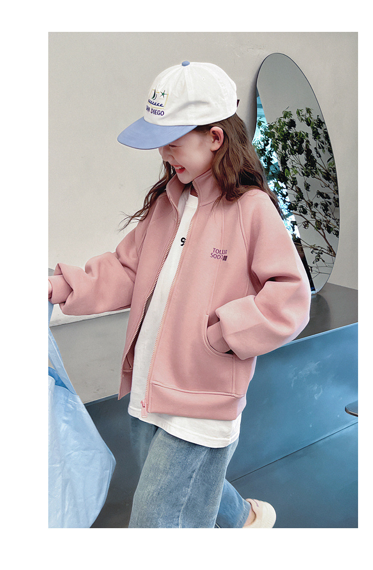 소녀를위한 소녀 세련된 칼라 코트 어린이 긴 소매 카디건 중형 및 대형 아동복 탑 2025 봄과 가을 새로운스토어 가기