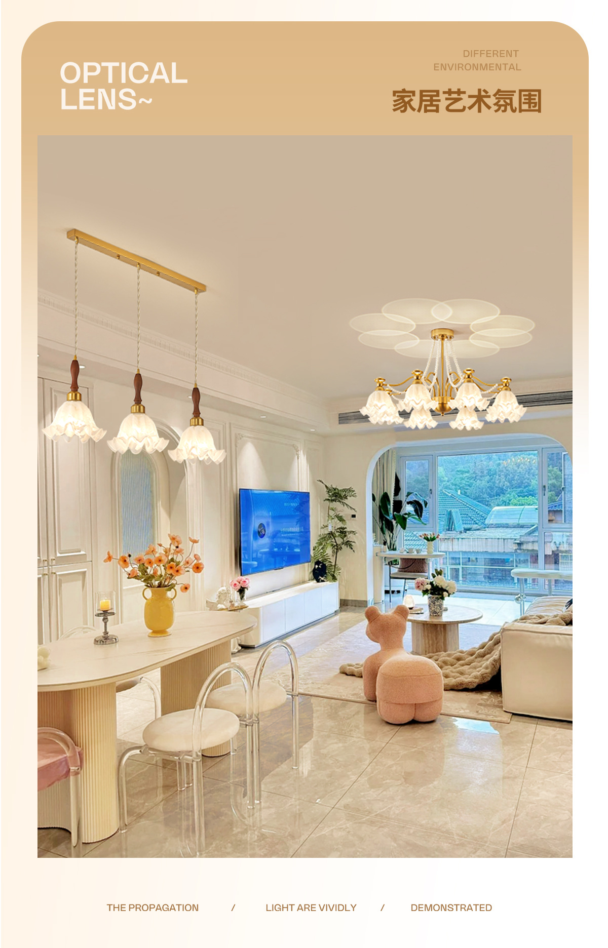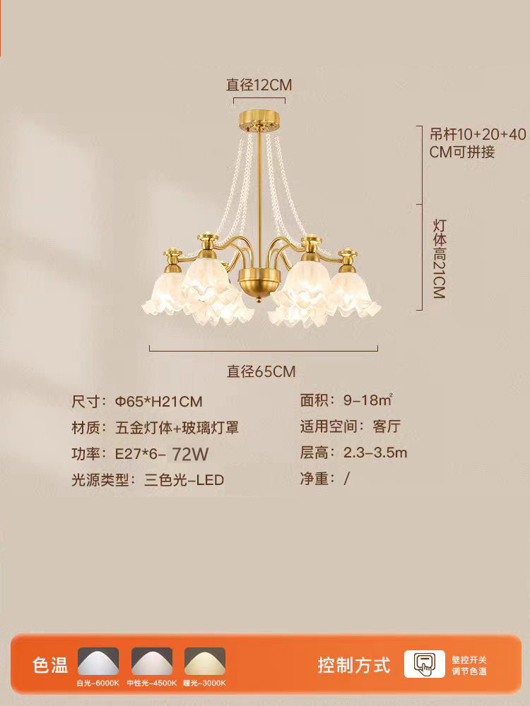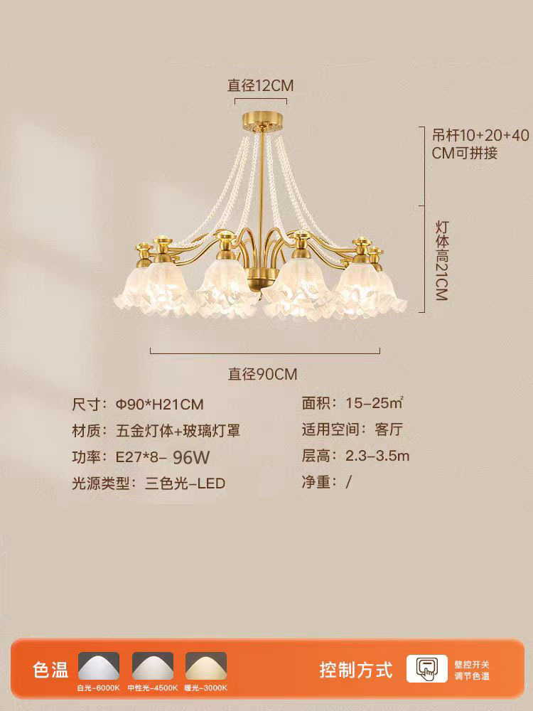 프랑스 거실 샹들리에 2025 새로운 크림 바람 난초 진주 램프 천장 분위기 침실 메인 램프 식당 램프스토어 가기