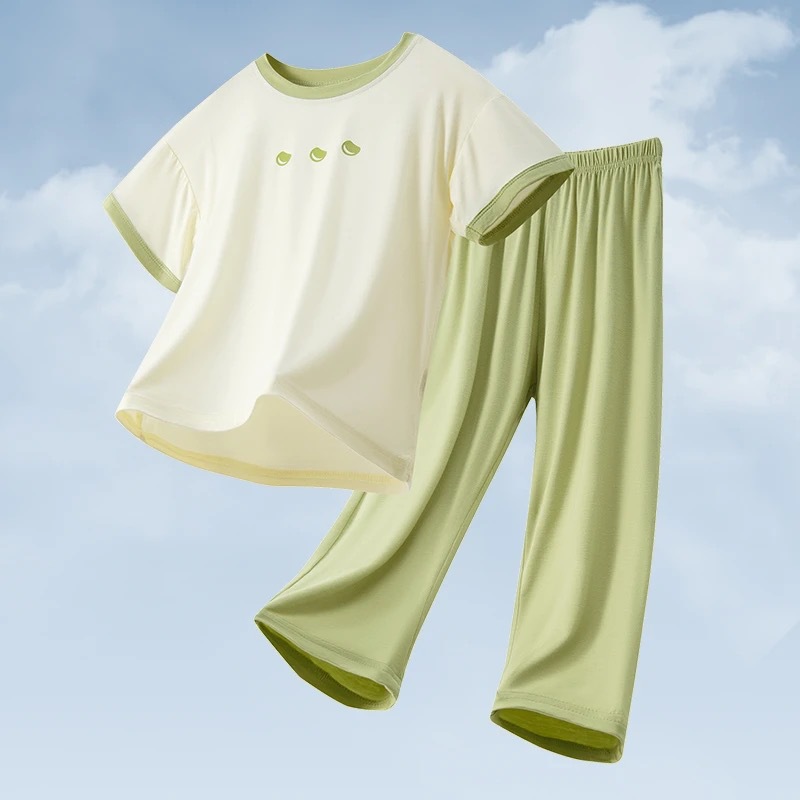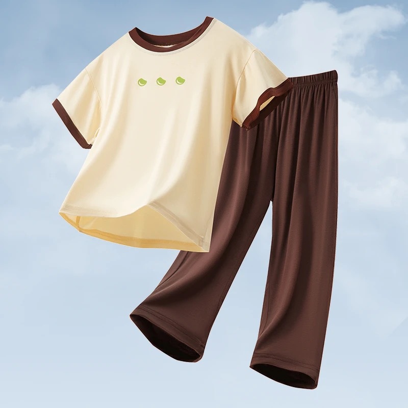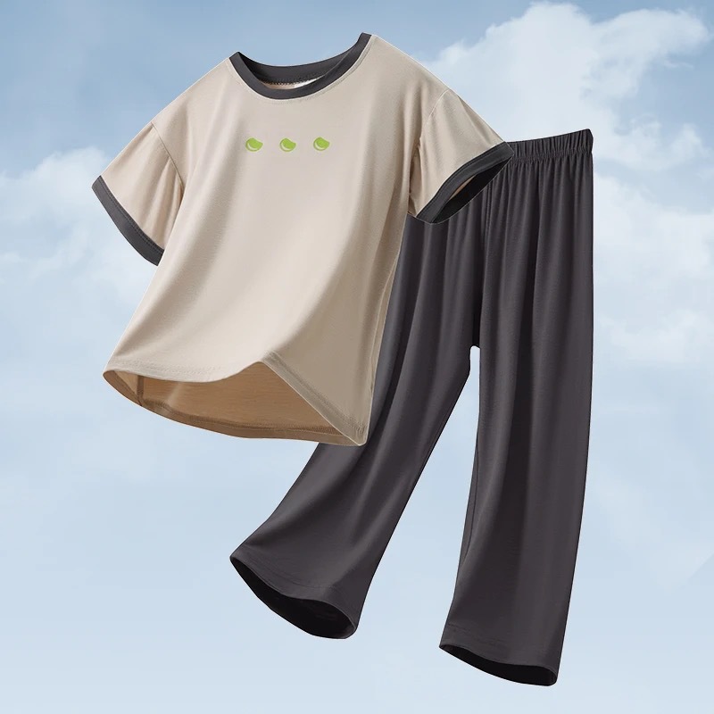 남학생 반팔 반바지 모조 면화 세트 어린이 속옷 잠옷 여름 캐주얼 심플 보이즈 중 · 대형 아동집 옷