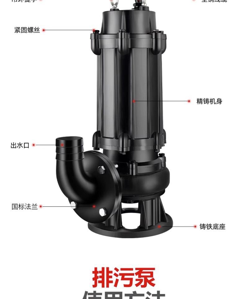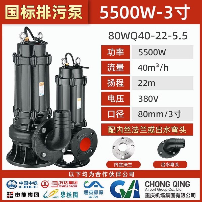 상하이 사람들의 모든 구리 국가 표준 가정용 하수 펌프 220V 잠수정 펌프 380v 삼상 잠수정 표준 하수 펌프