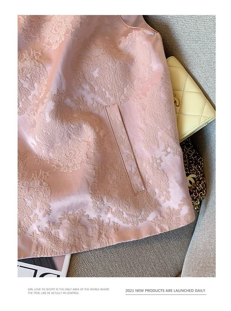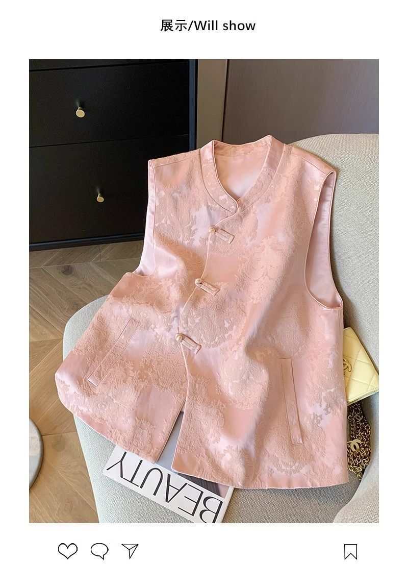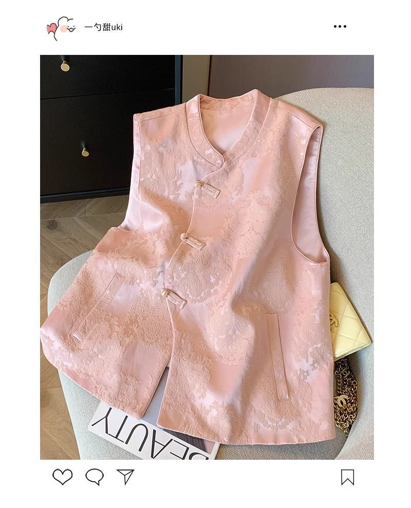 핑크 새로운 중국 스타일 다크 패턴 자카드 날씬한 가슴 조끼 여성 2025 년 봄과 여름 새로운 스타일 국가 스타일 우아한 달콤한 허리 코트 조끼스토어 가기