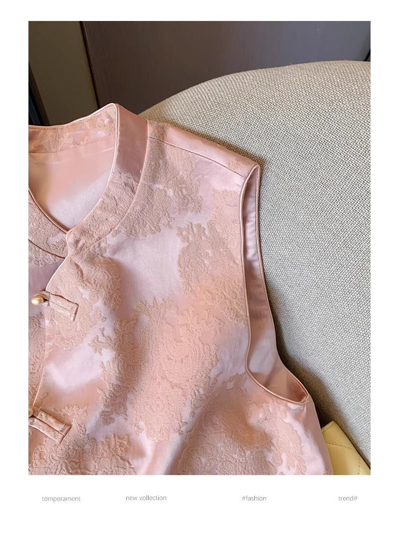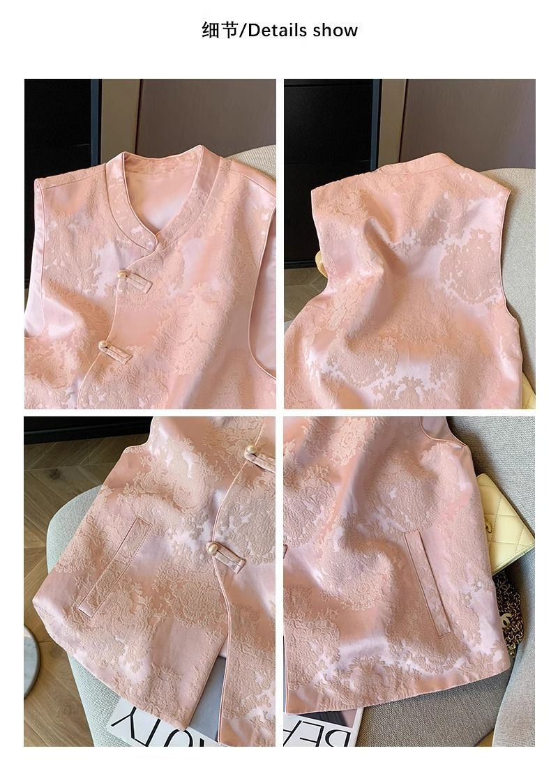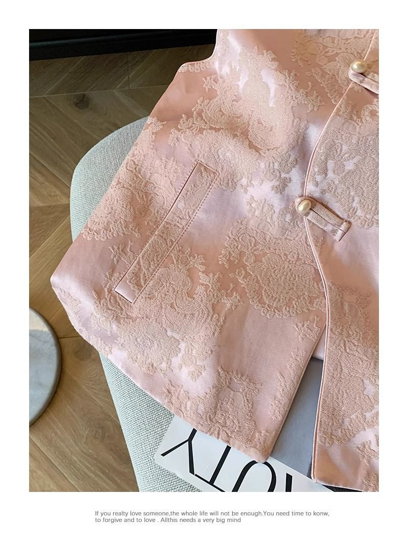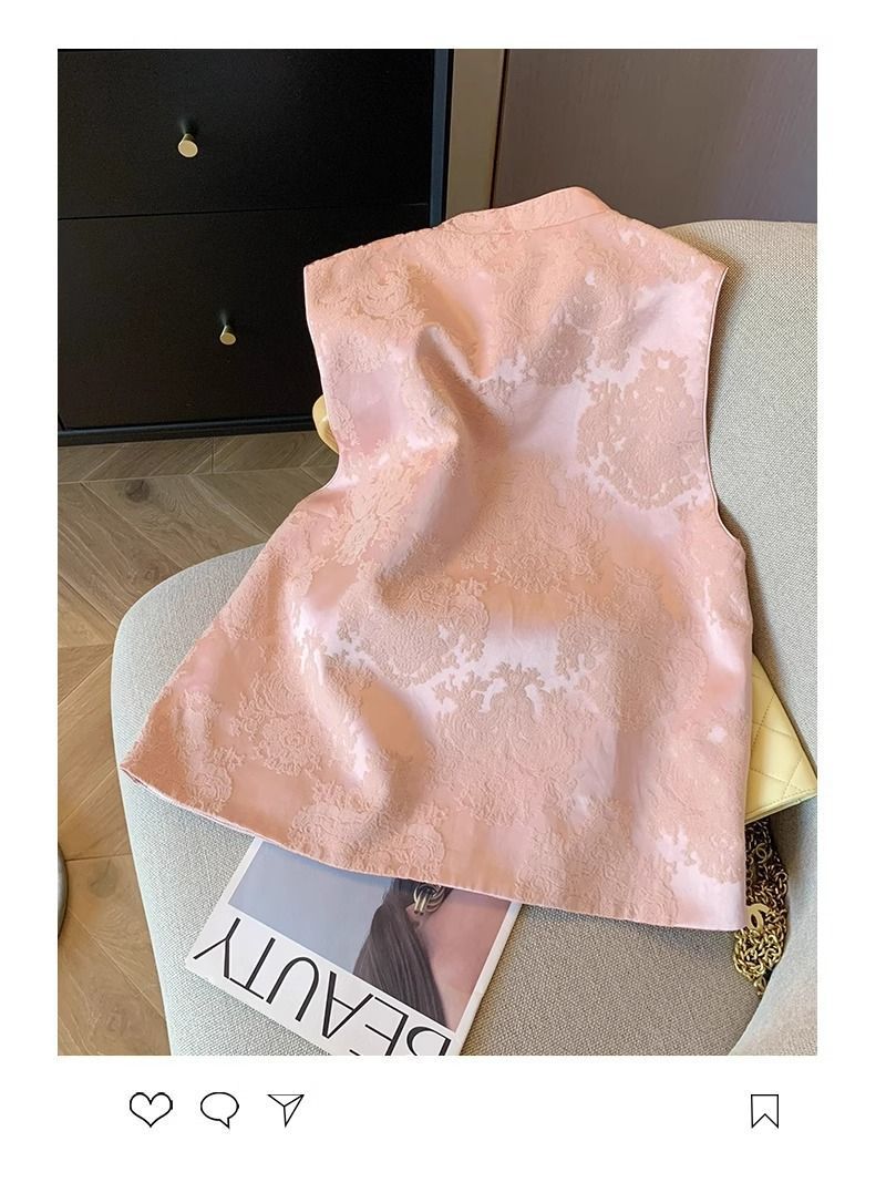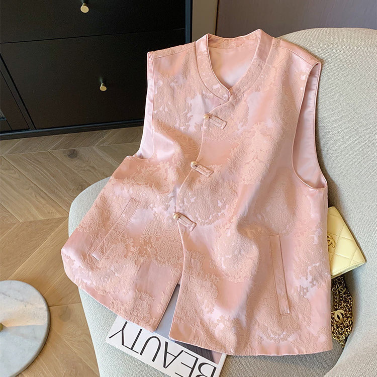 핑크 새로운 중국 스타일 다크 패턴 자카드 날씬한 가슴 조끼 여성 2025 년 봄과 여름 새로운 스타일 국가 스타일 우아한 달콤한 허리 코트 조끼