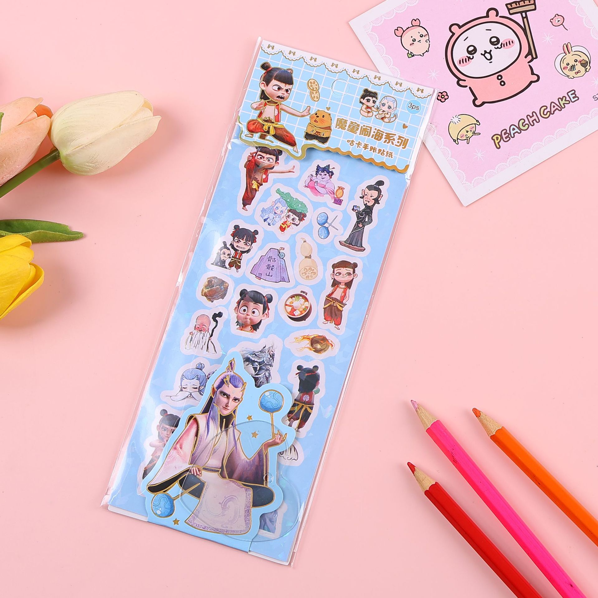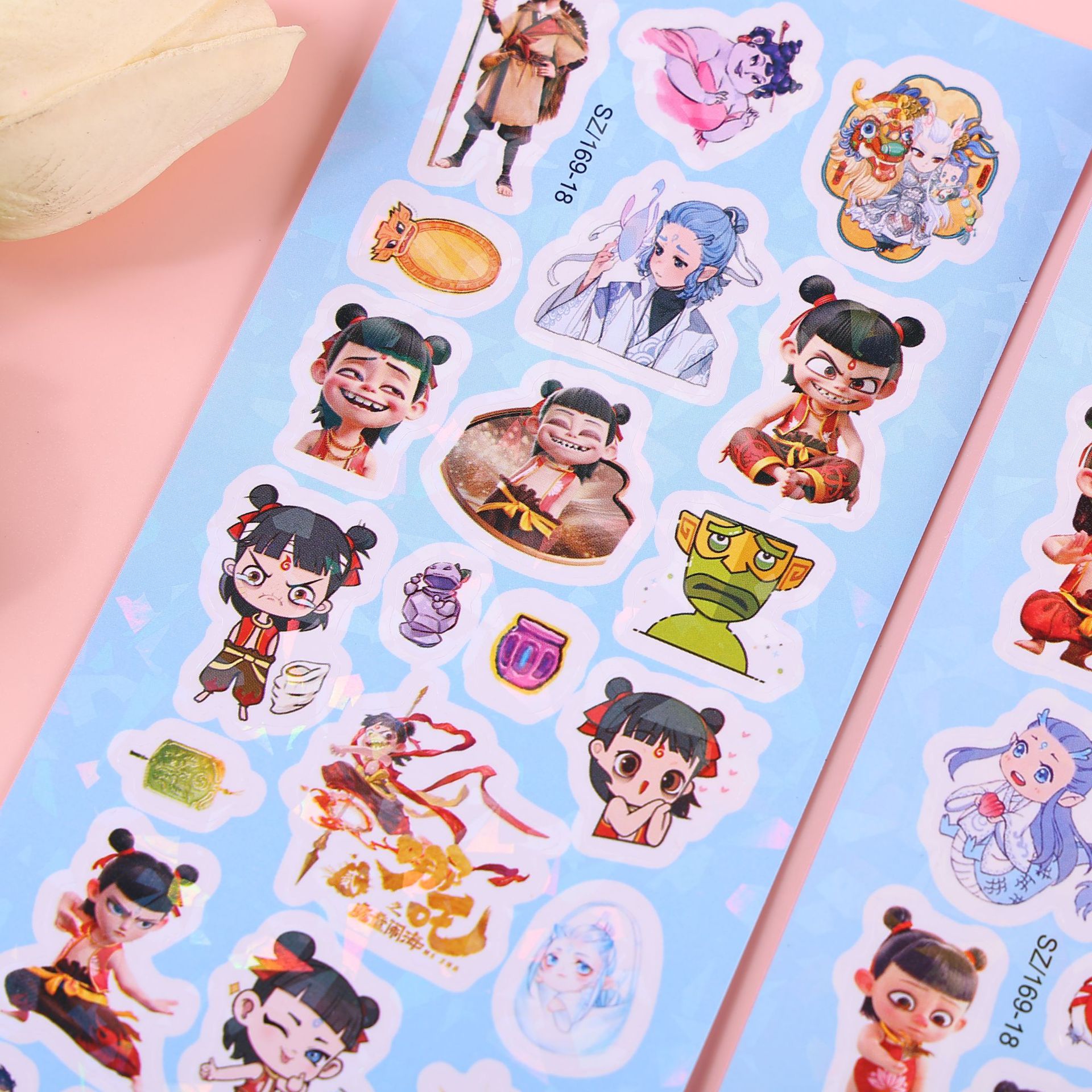Nezha의 악마 소년 바다 표현 스티커 긴 Guka 레이저 스티커 만화 장식 핸드북 스티커 스톨 도매스토어 가기
