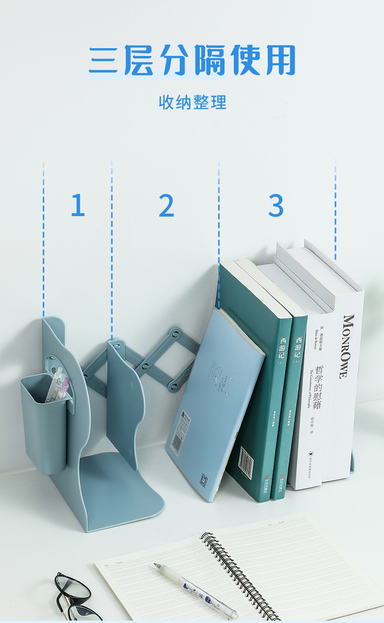 책상 개폐식 랙 플라스틱 저장 랙 펜 홀더 고정 책장 접이식 공간 무료스토어 가기