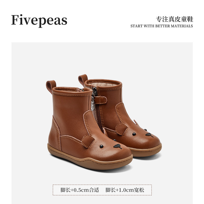 5 개의 콩 베이비 부츠 어린이 어린이 부츠 소녀 부츠 가을 및 겨울 작은 가죽 부츠 부드러운 바닥 마틴 부츠