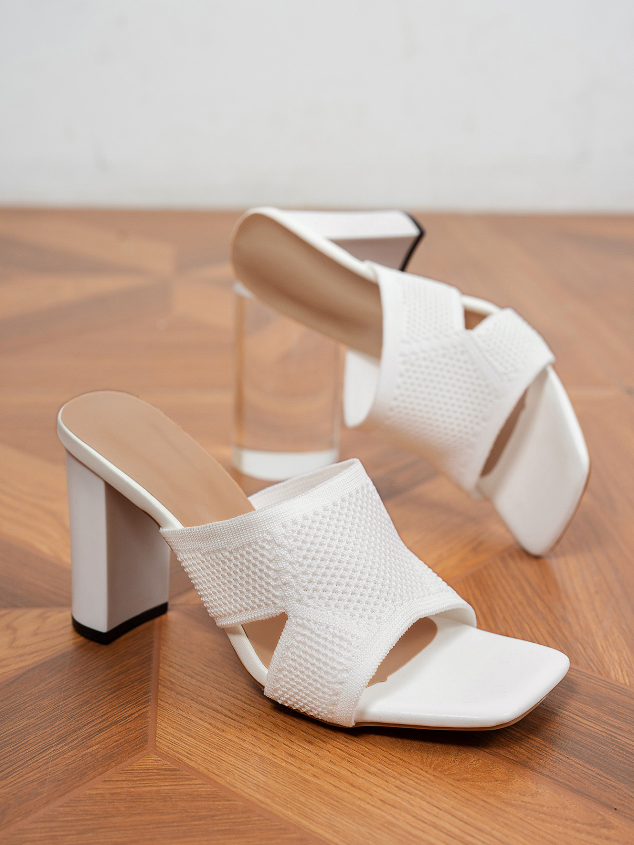 국경 2025 유럽과 미국의 대외 무역 새로운 여성 신발 중공 두꺼운 굽 니트 울 하이힐 스퀘어 슬리퍼