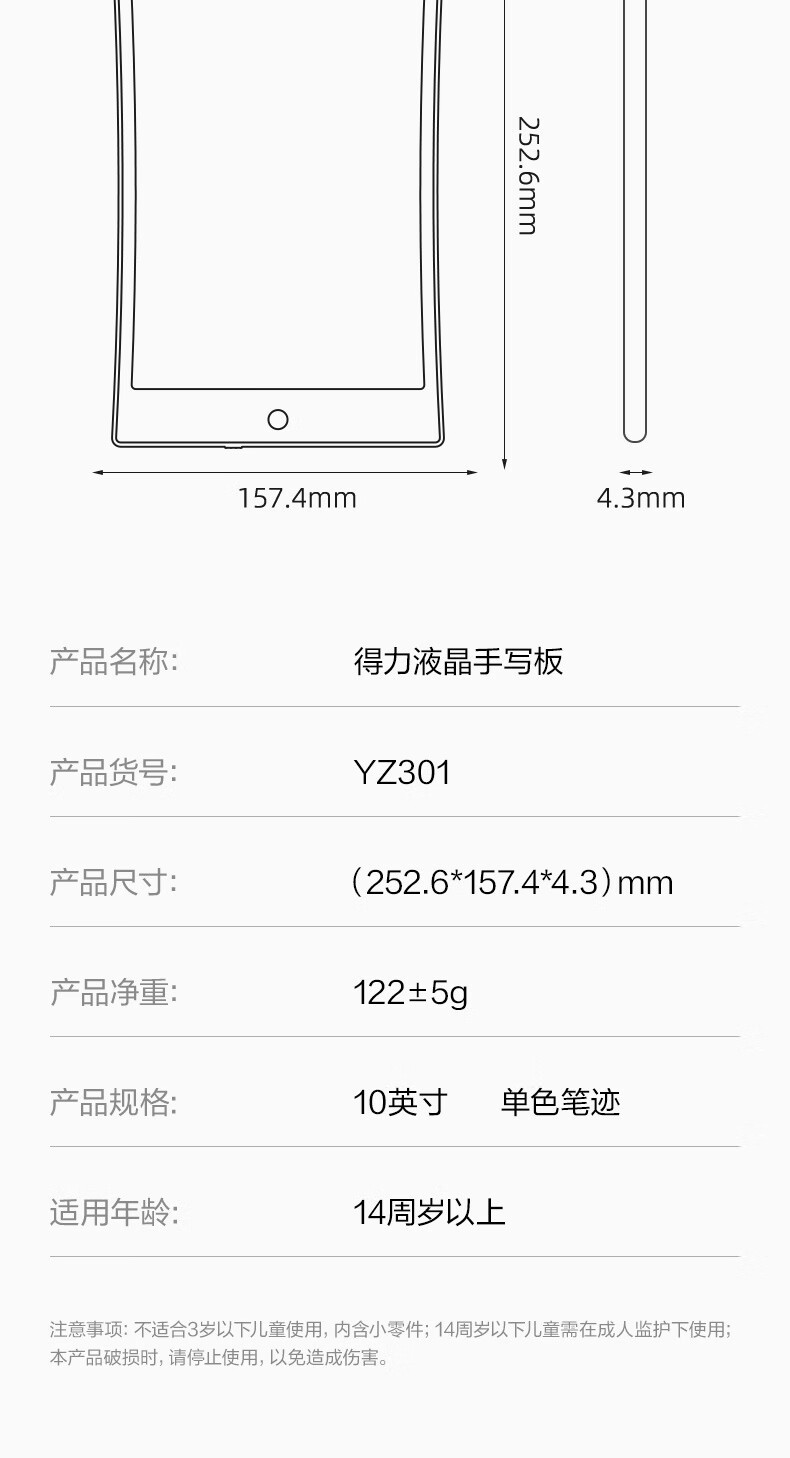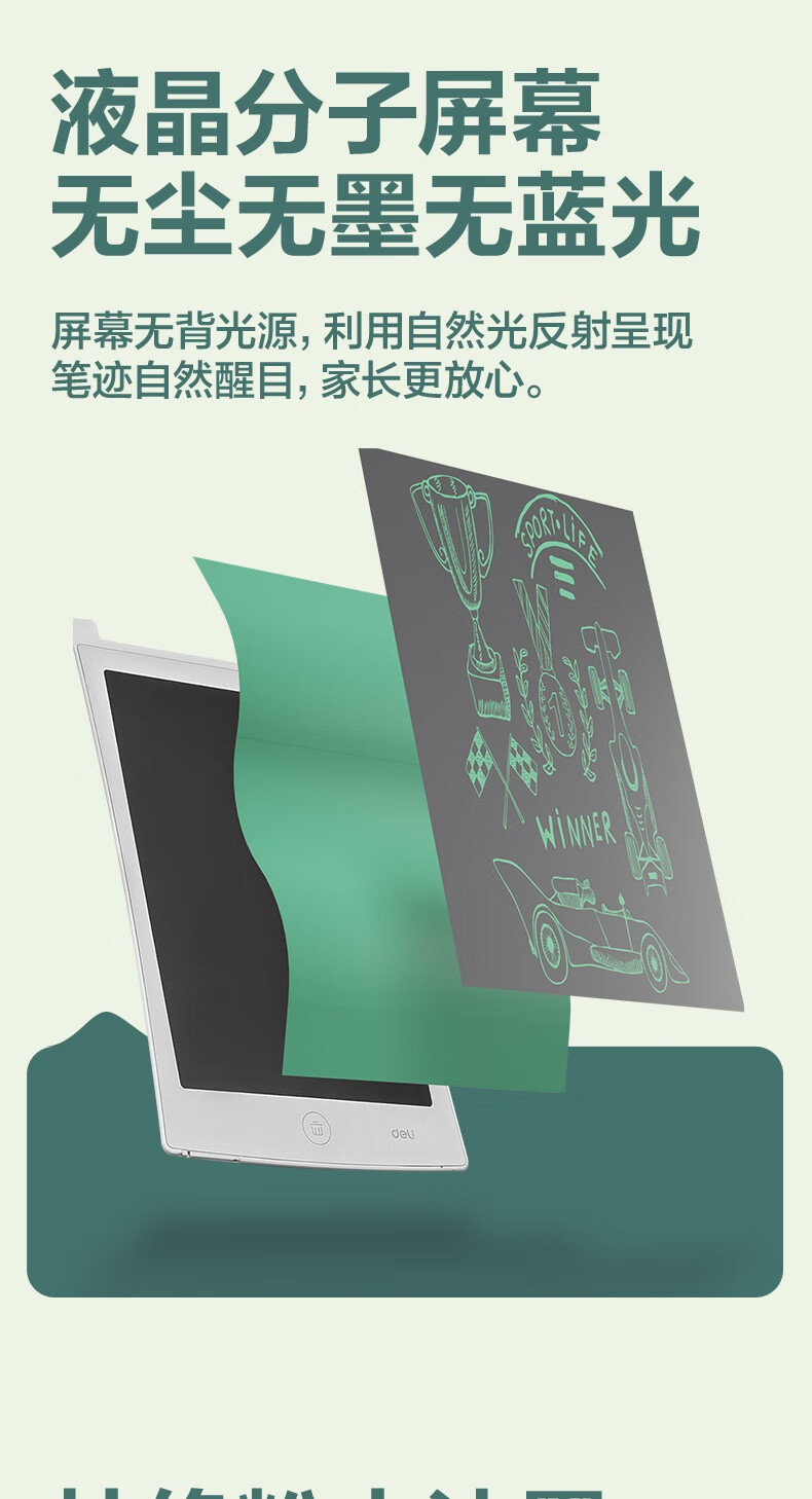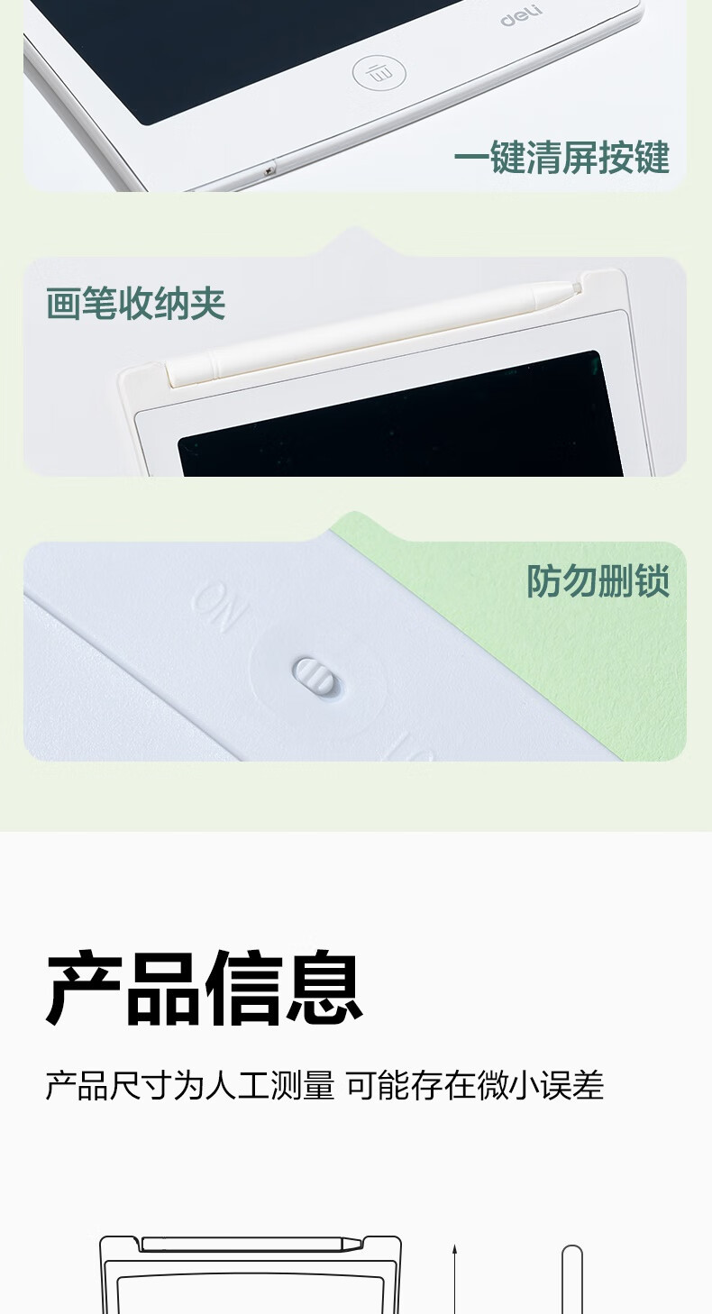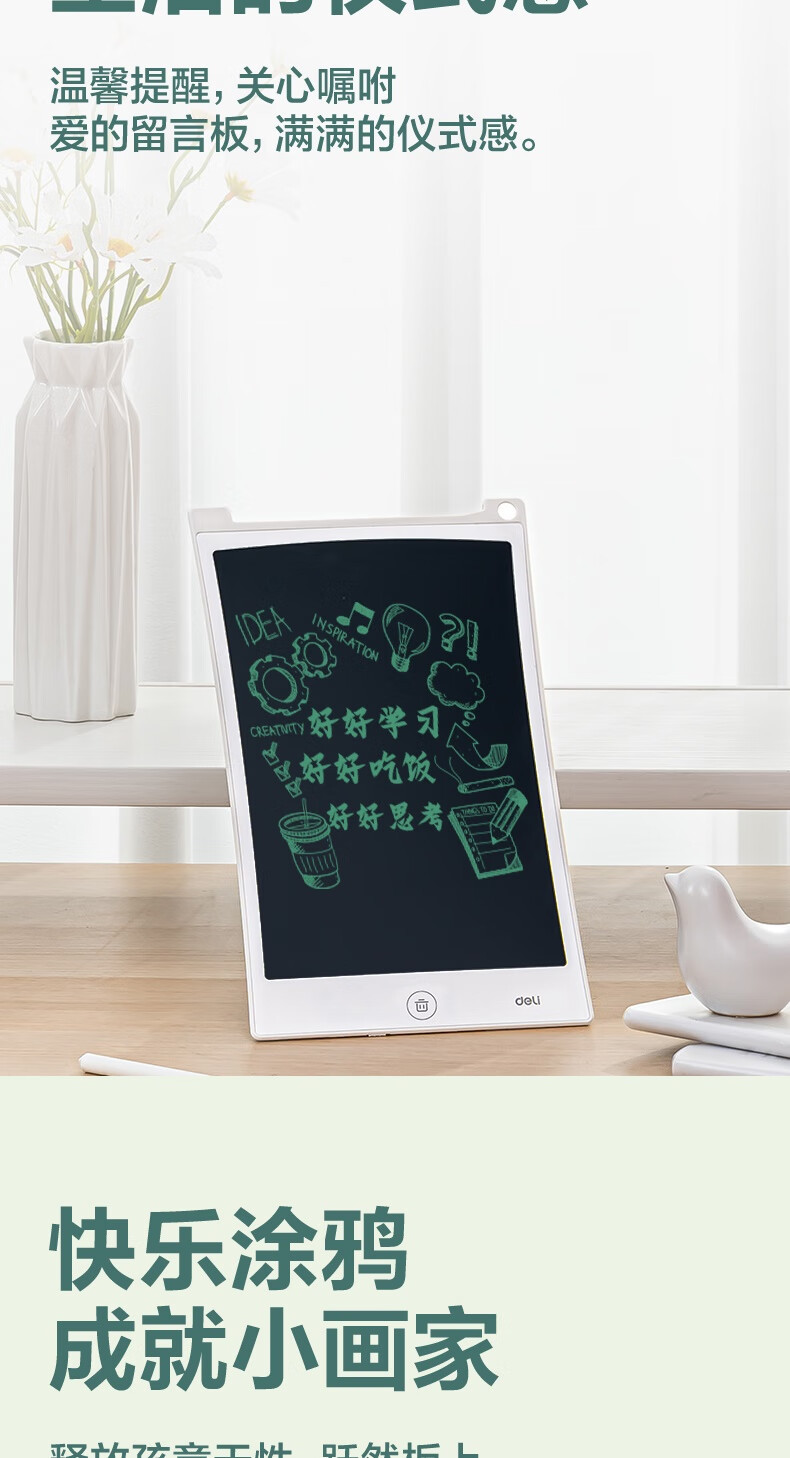 델리 LCD 필기 보드 10 인치 흑백 필기 학생 문구 손 그리기 보드 YZ301스토어 가기