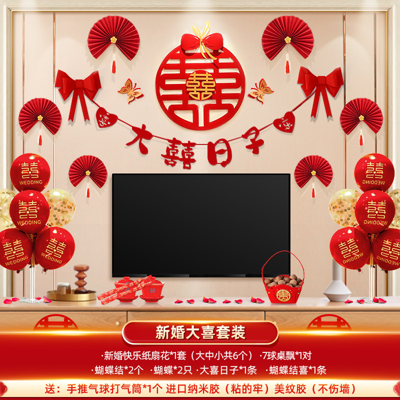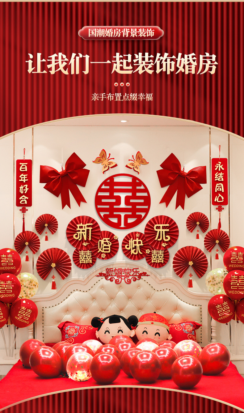 여성 침실 웨딩 룸 배치 세트 웨딩 장식 웨딩 뉴 하우스 꽃 거실 웨딩 해피 캐릭터 룸