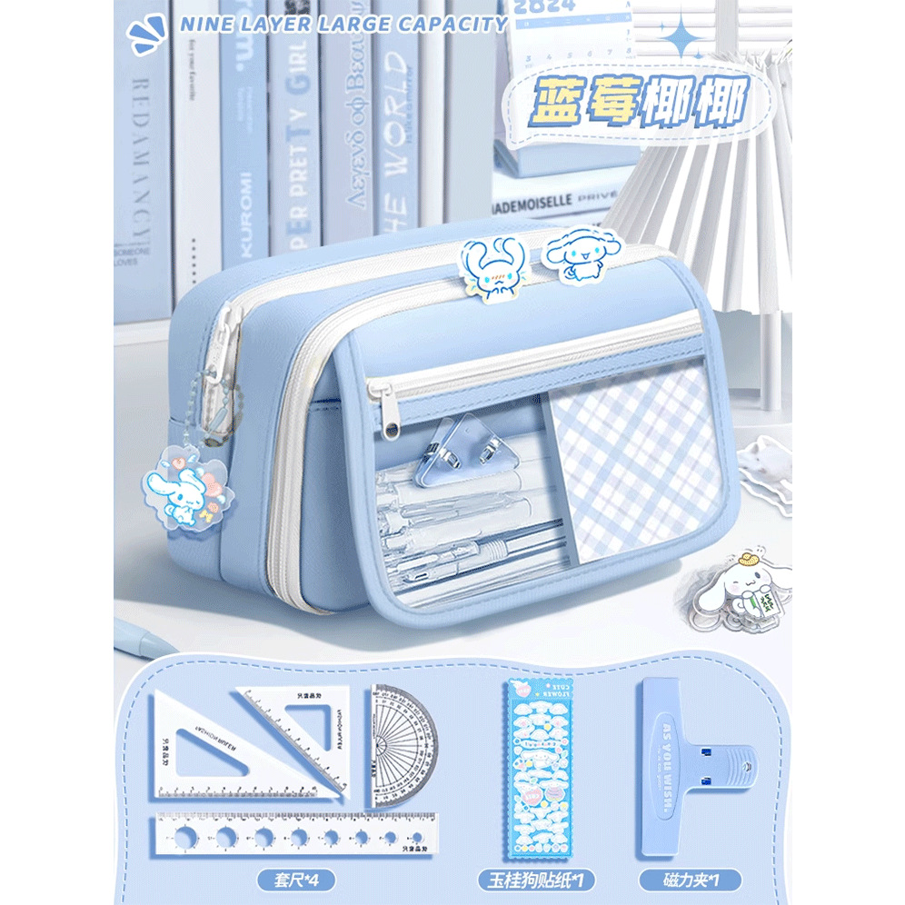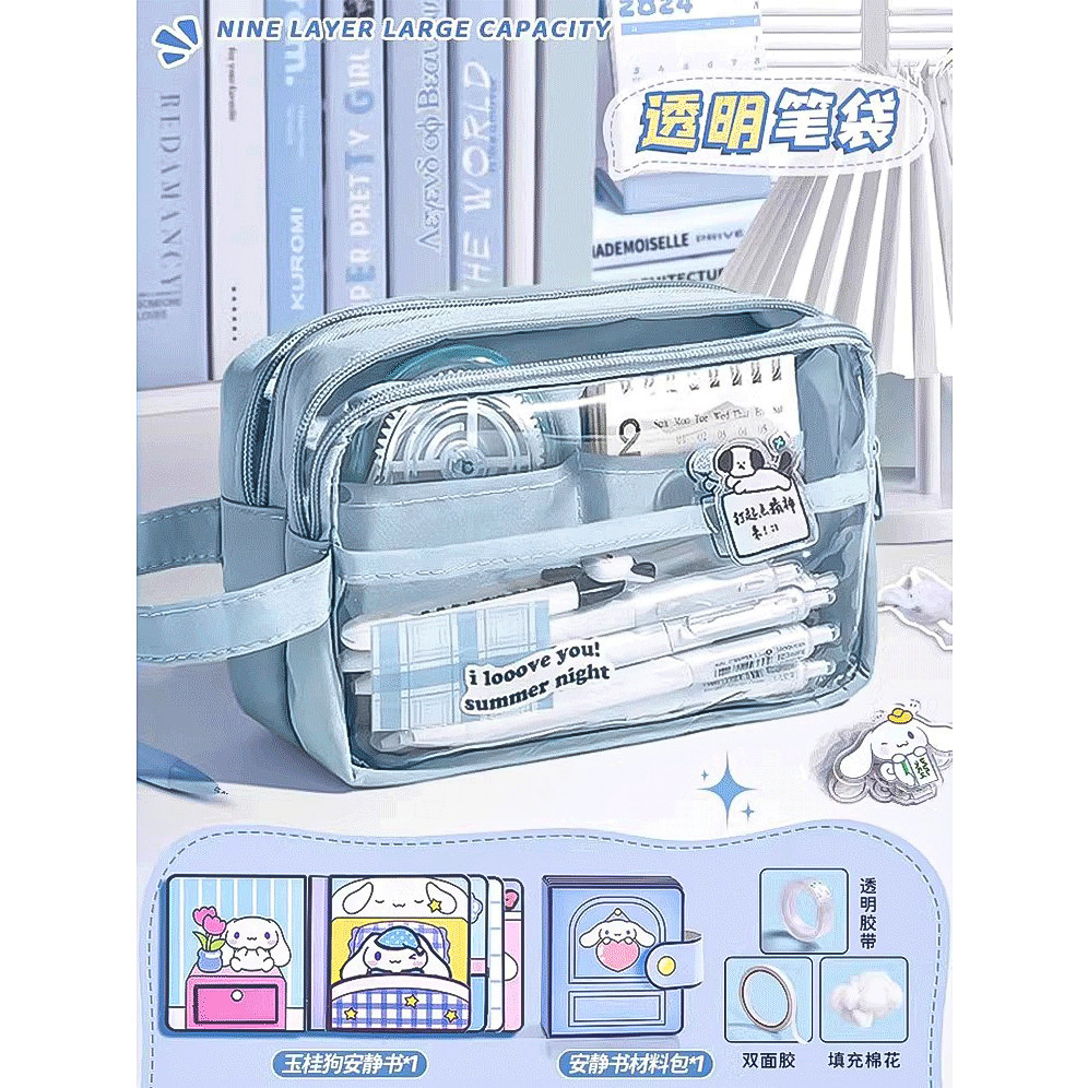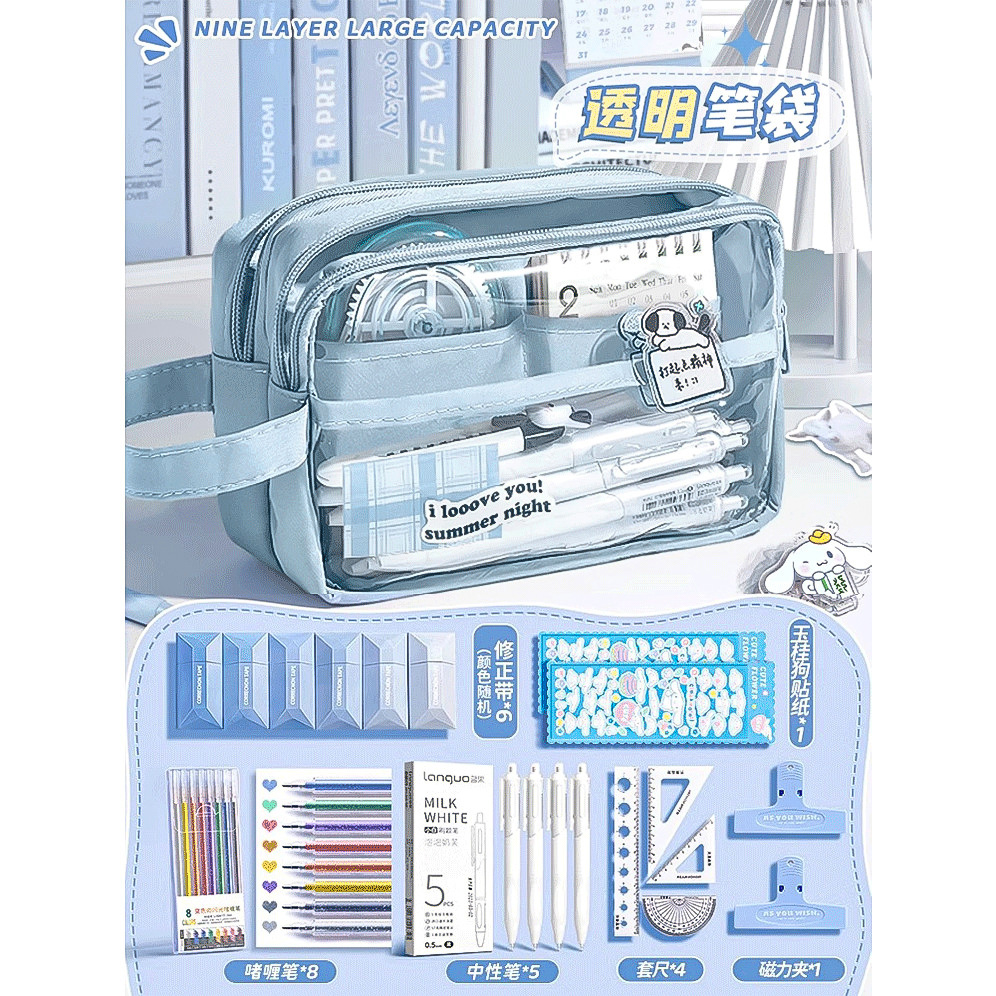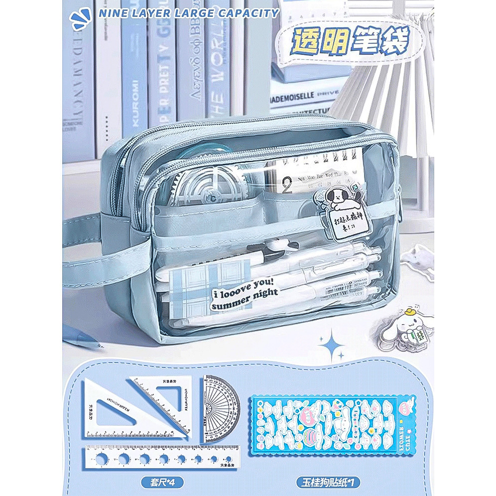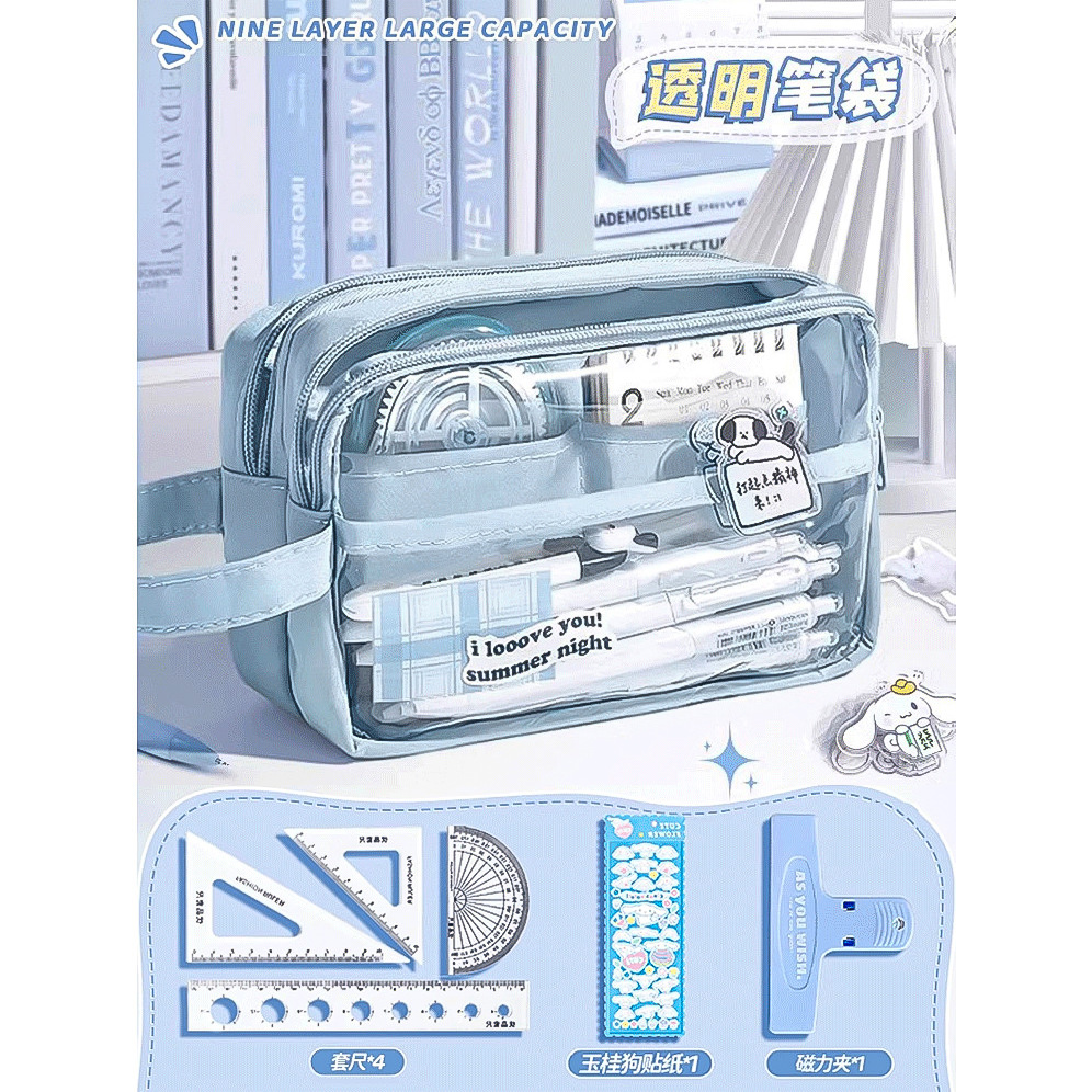• 5겹 투명 필통/자 세트 + 스티커 + 자석 클립 포함