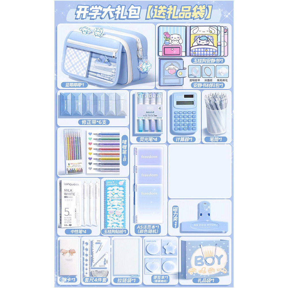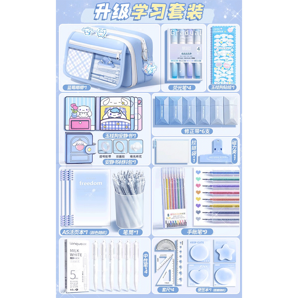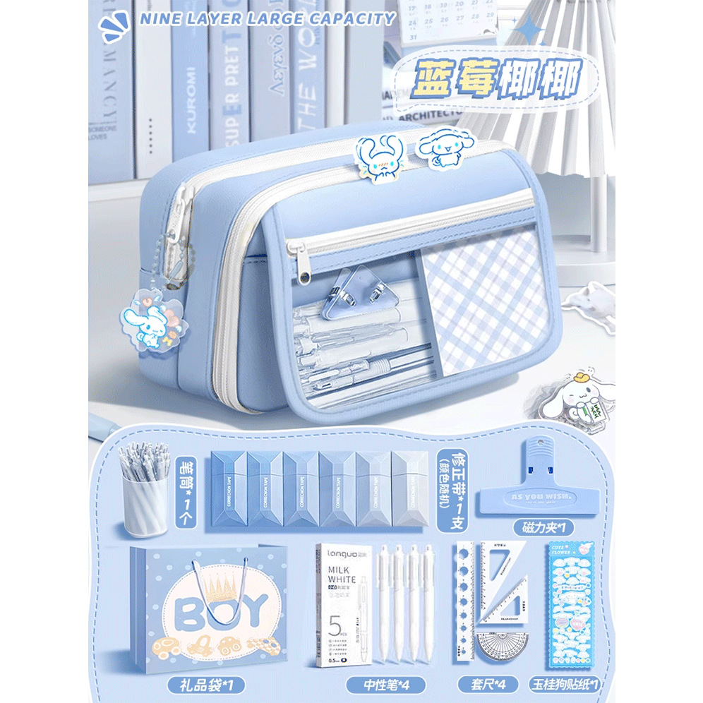 • 80%의 고객이 [모두 세트] 9단 필통/선물 가방 + 자 세트 + 스티커 + 자석 클립 + 수정 테이프 + 펜 홀더 + 질문 브러쉬를 선택합니다.