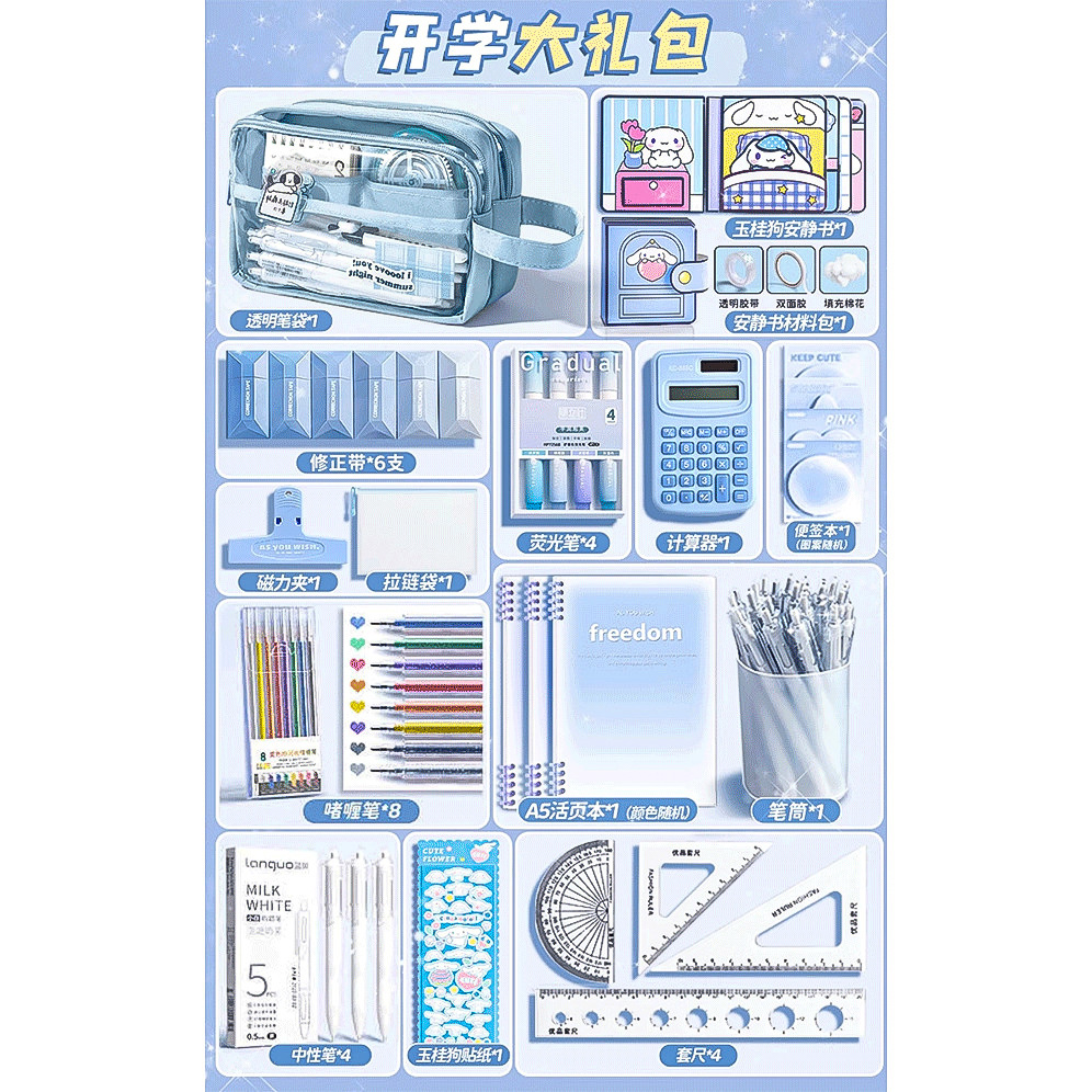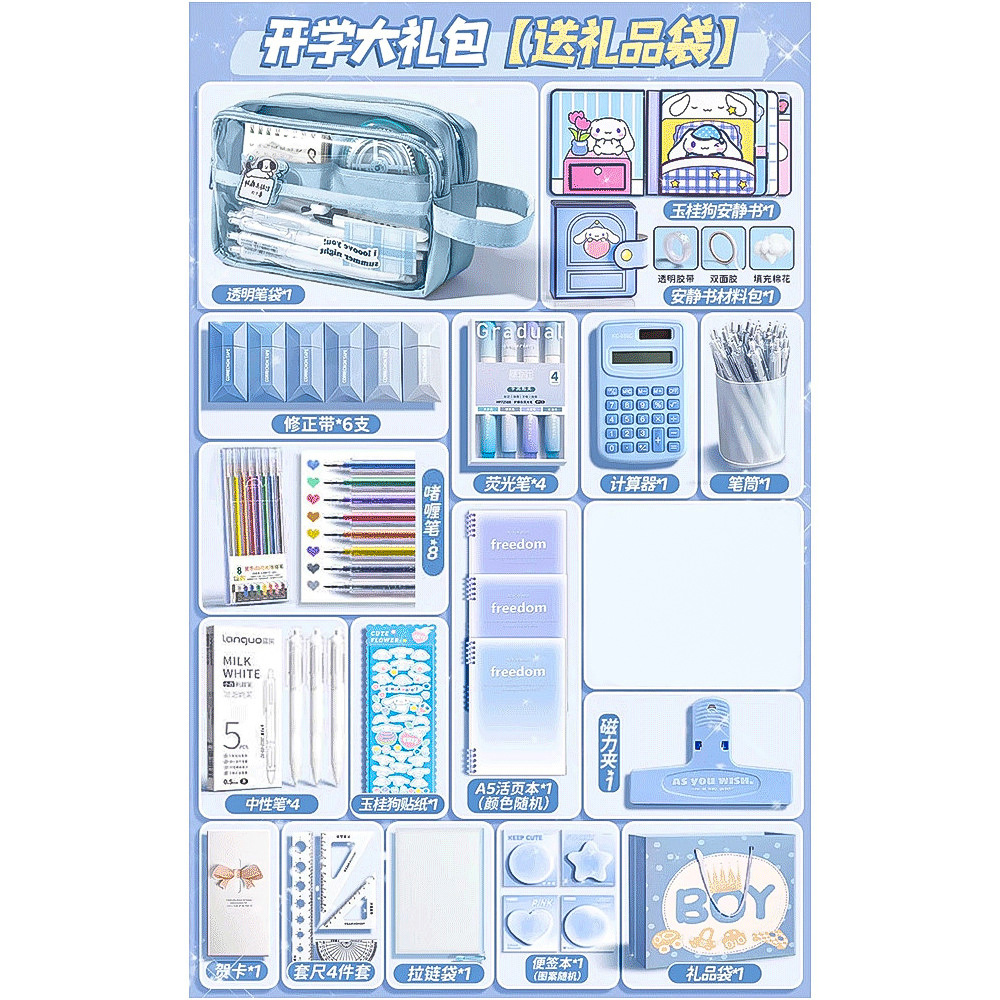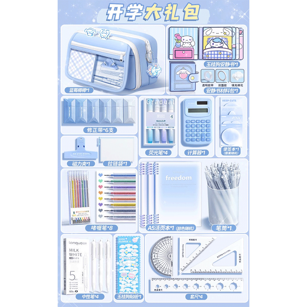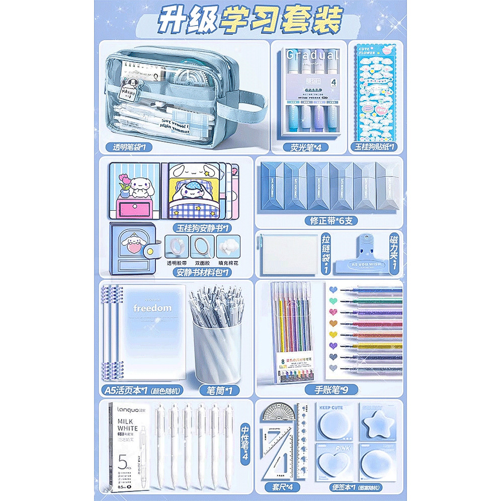 • 80%의 고객이 [모두 세트] 9단 필통/선물 가방 + 자 세트 + 스티커 + 자석 클립 + 수정 테이프 + 펜 홀더 + 질문 브러쉬를 선택합니다.