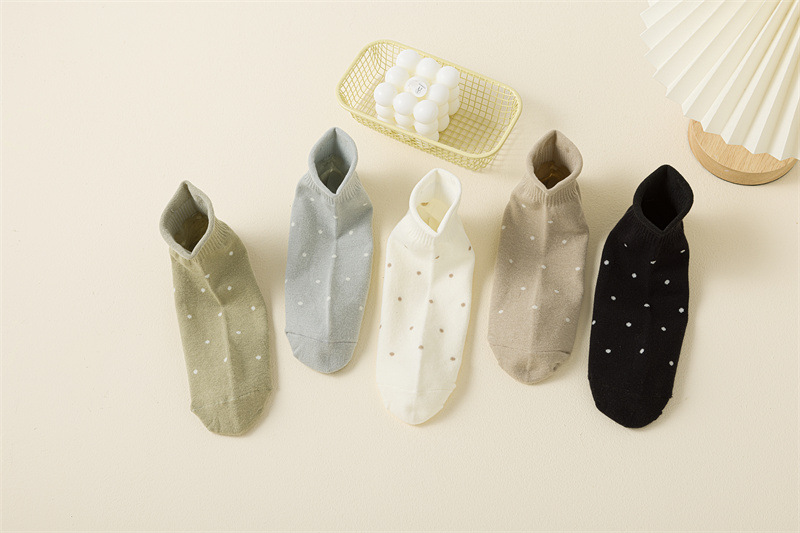 느슨한 보트 양말 여성의 봄과 여름 얇은 얕은 보트 양말 일본 양말 어린이 컬링 된 폴카 도트는 폴카 도트 코튼 양말로 떨어지지 않습니다.스토어 가기