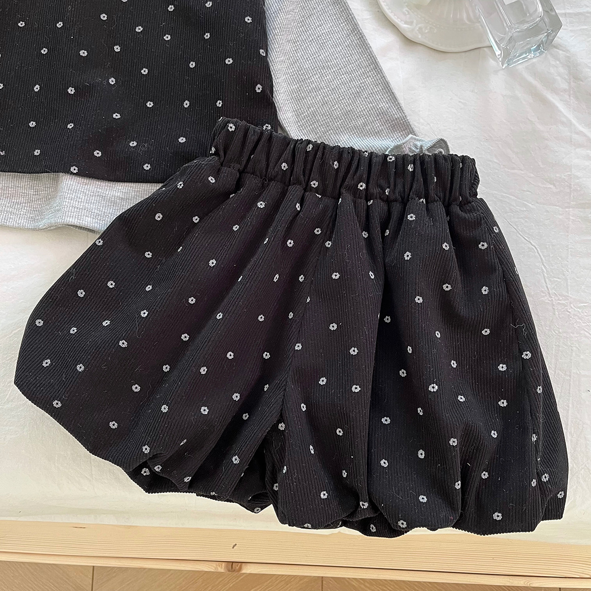 소녀 세트 2025 봄과 가을 새로운 한국 스타일 폴로 도트 조끼 꽃 버드 반바지 아기 소녀베이스 셔츠 크로스 테두리스토어 가기