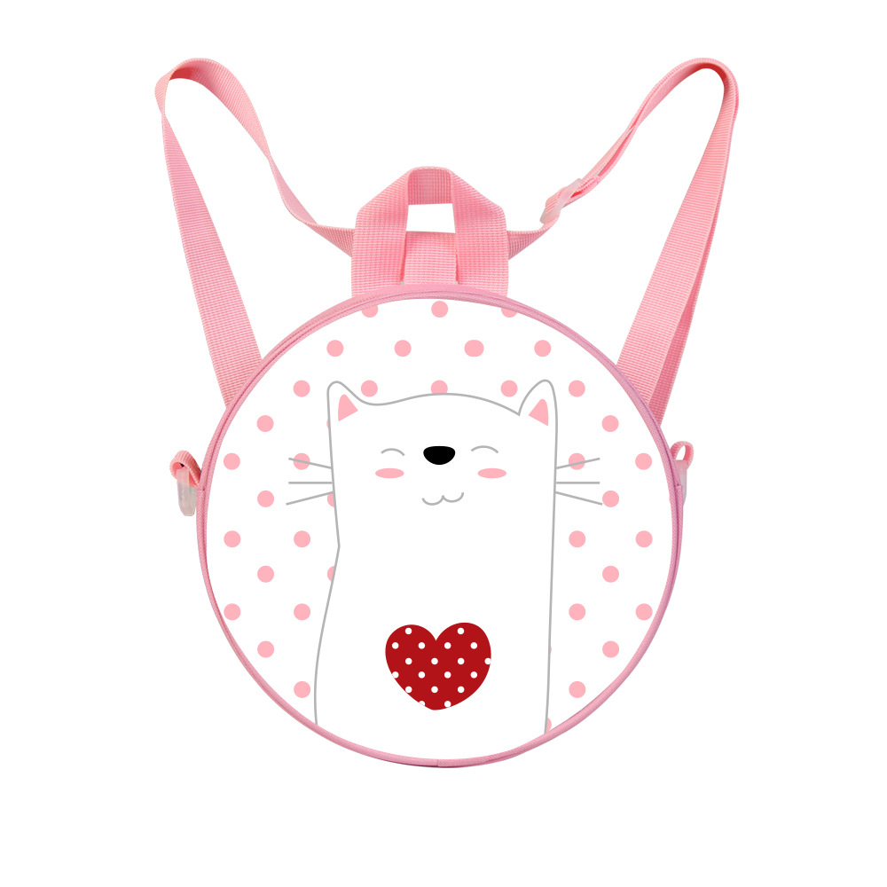 어린이 가방 유치원 귀여운 만화 고양이 학생 가방 소년과 소녀 아기 크로스 바디 가방 핑크 작은 라운드 가방