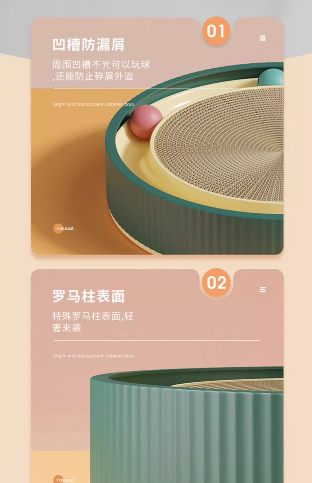 고양이 스크래쳐, 공이 있는 초대형 원형, 부스러기가 잘 안 떨어지며 내마모성이 뛰어난 일체형 고양이 집, 발톱갈이용 고양이 장난감, 애완용품스토어 가기