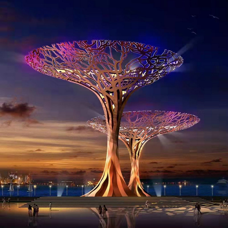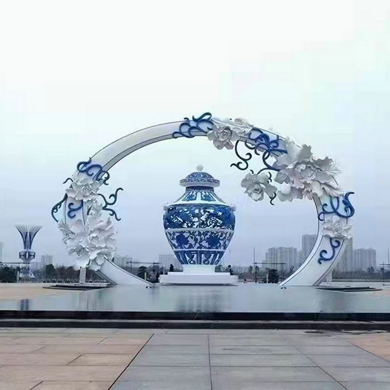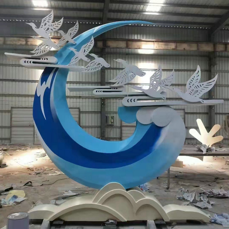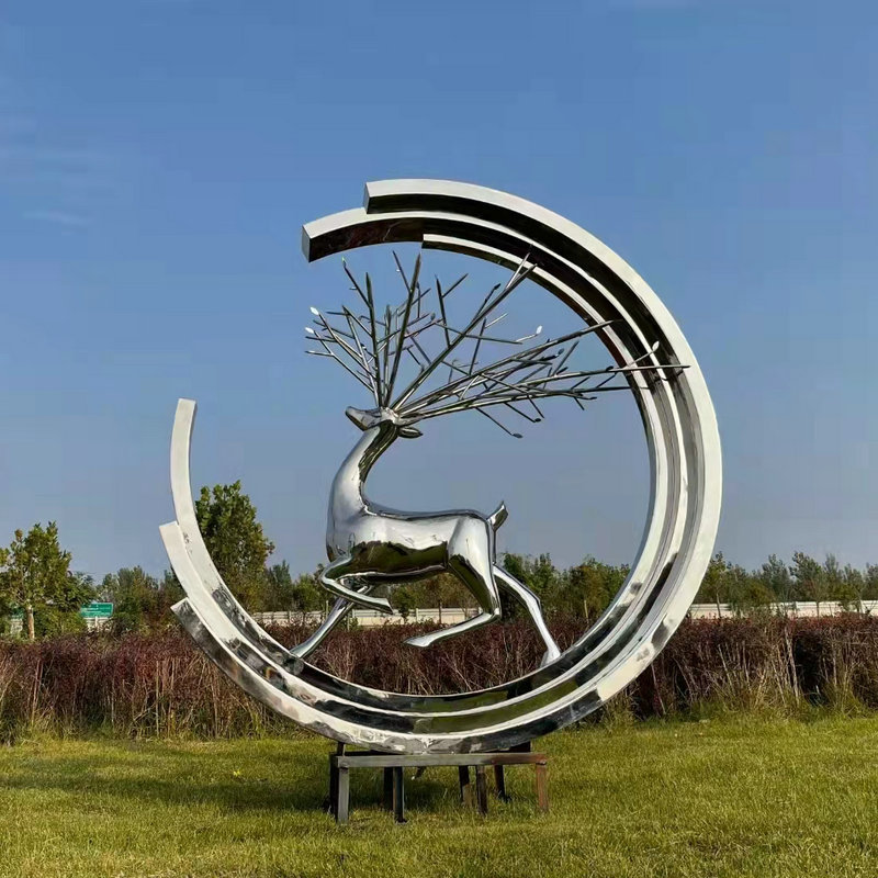 대형 스테인레스 스틸 조각 공원 금속 철 빈 사슴 반지 스프레이 추상 풍경 정원 야외 장식품