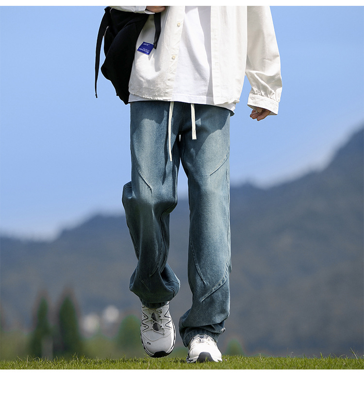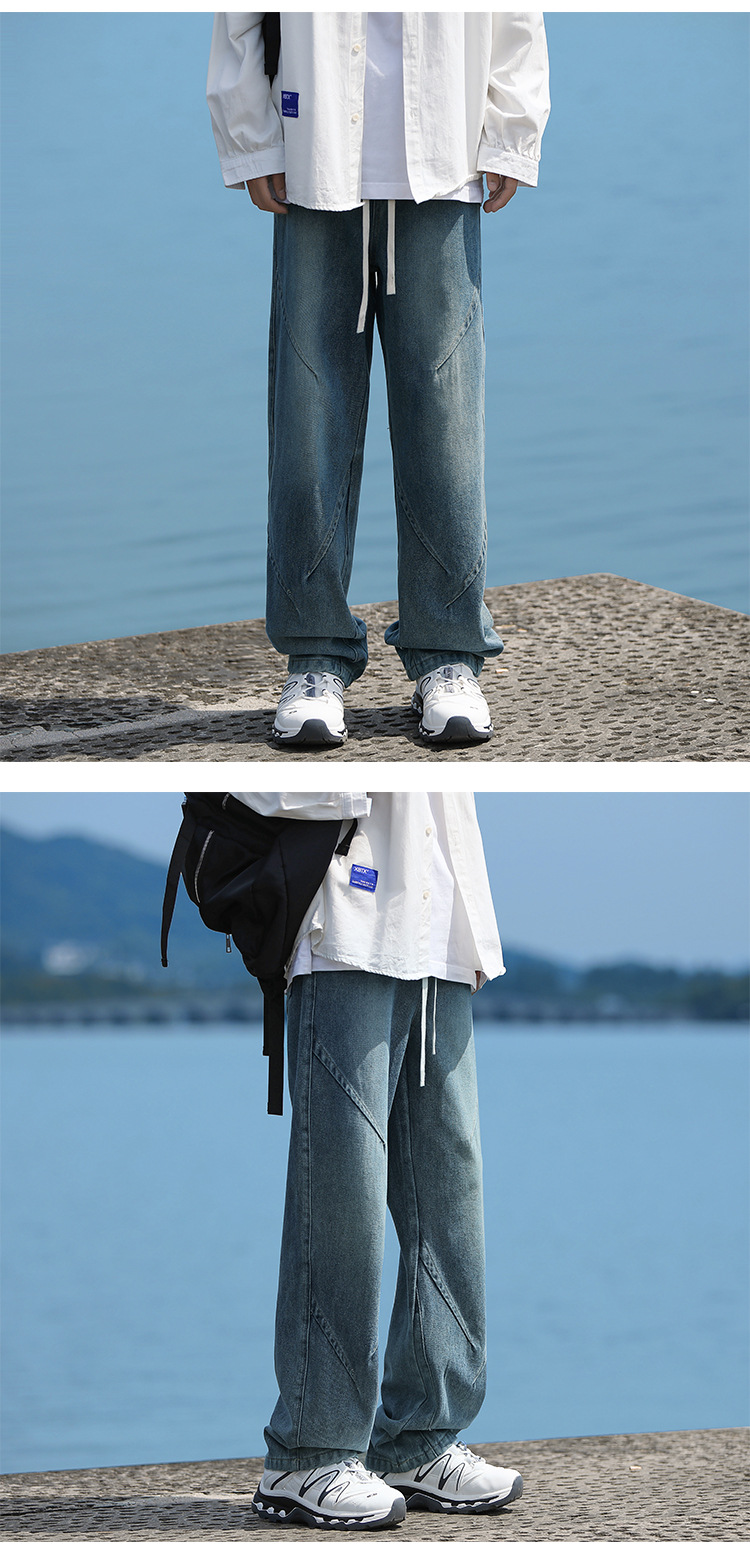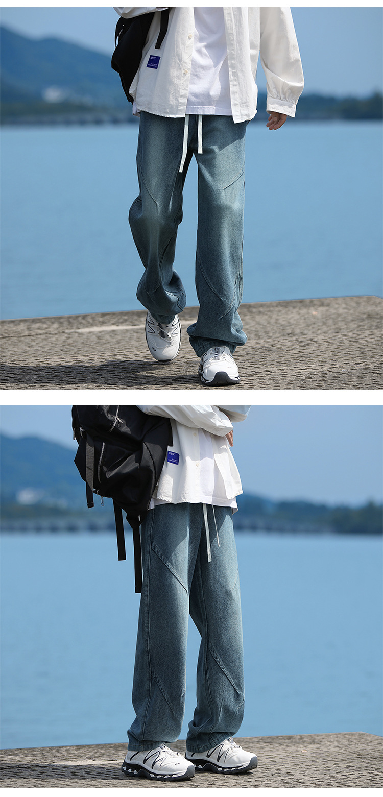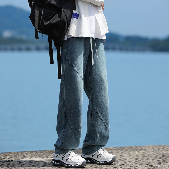 봄 미국 TikTok 품질 주름 청바지 남성용 트렌디 한 느슨한 바지스토어 가기