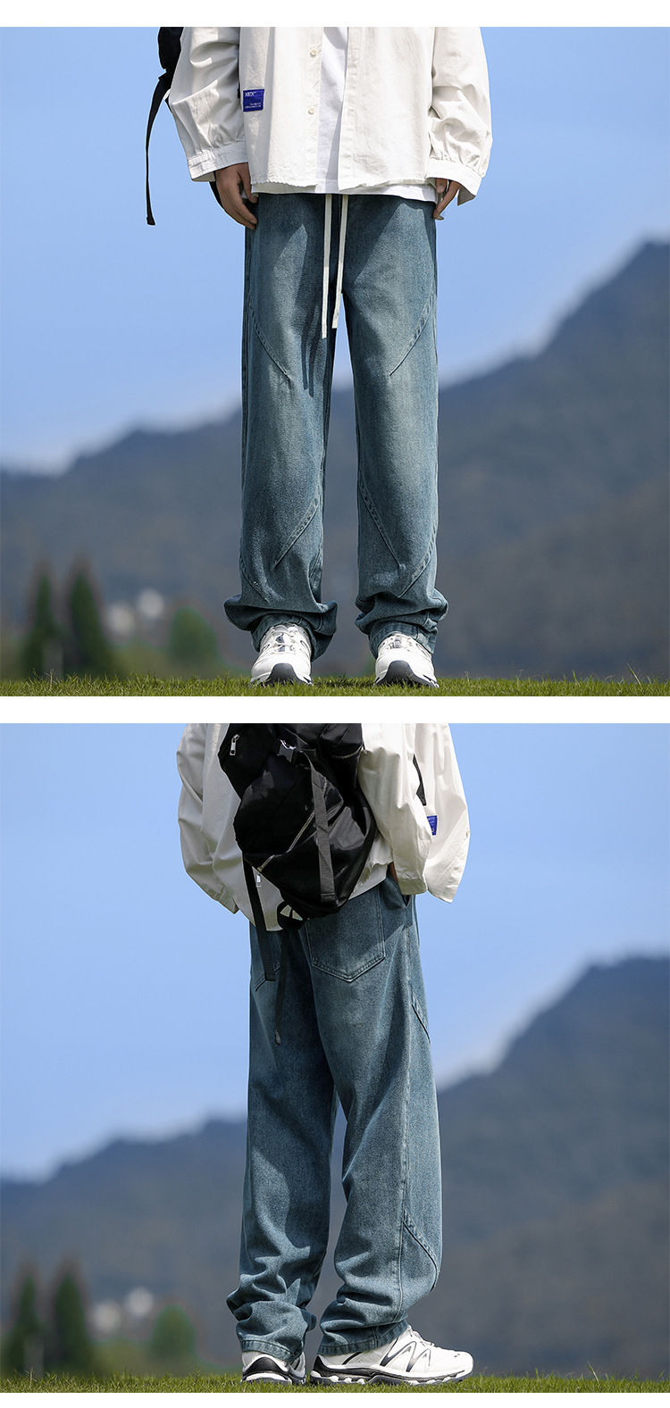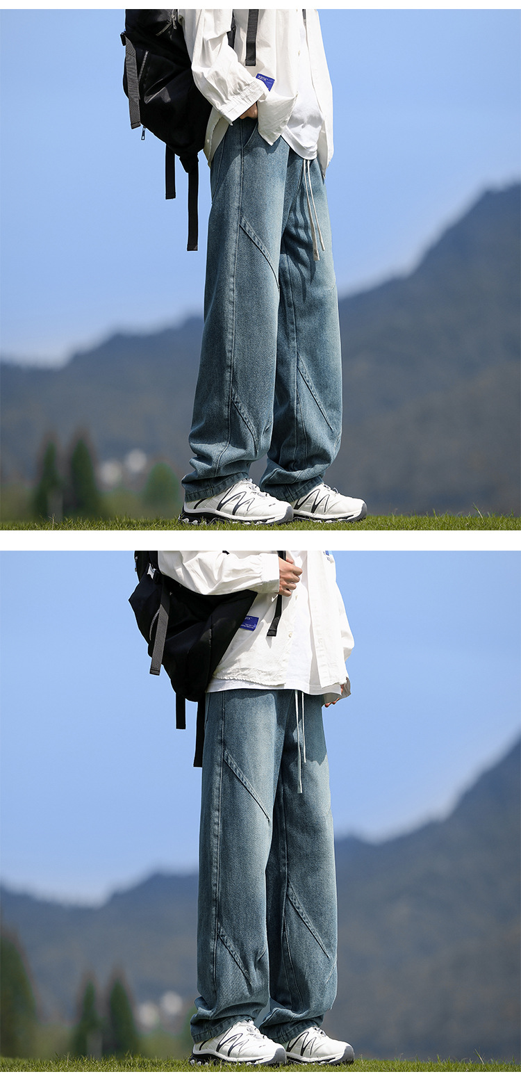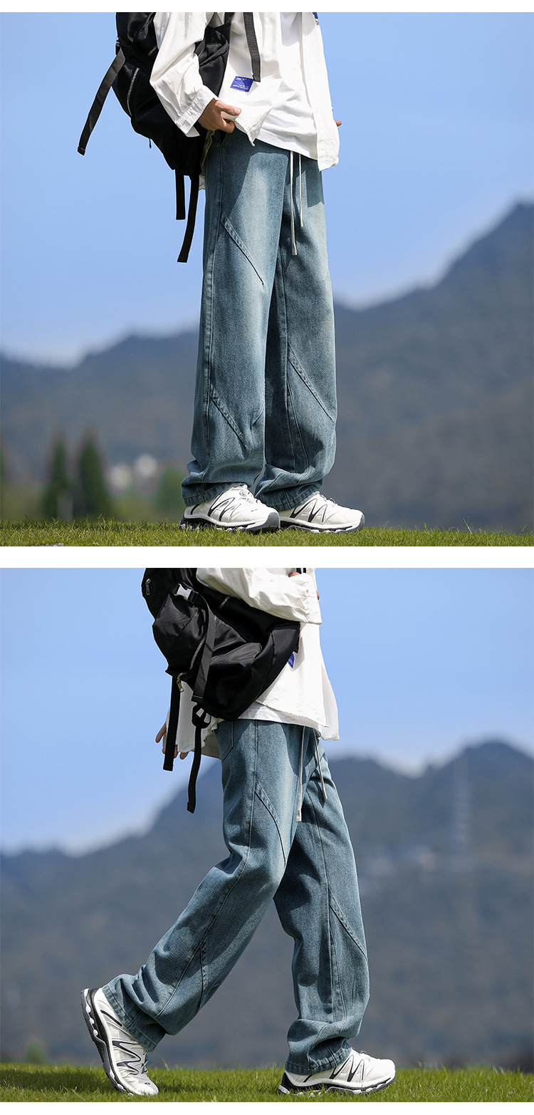 봄 미국 TikTok 품질 주름 청바지 남성용 트렌디 한 느슨한 바지스토어 가기