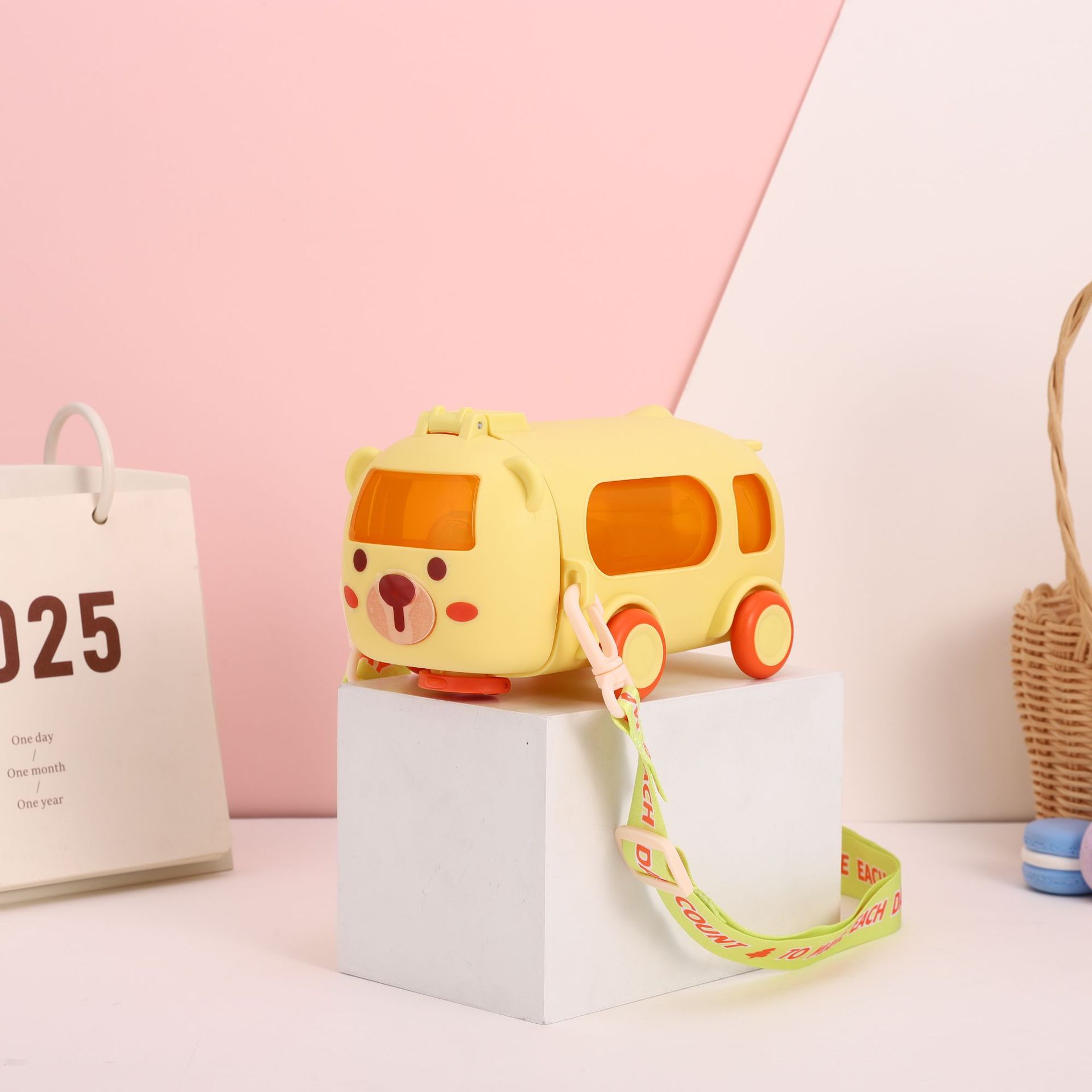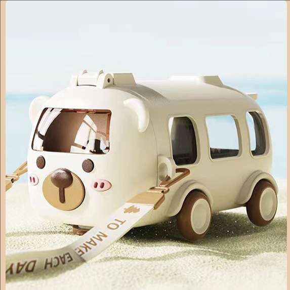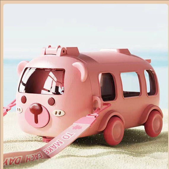 아기 버스 자동차 어린이 장난감 물 컵 높은 색상 값 플라스틱 작은 물 컵 빨대 귀여운 물 컵 도매