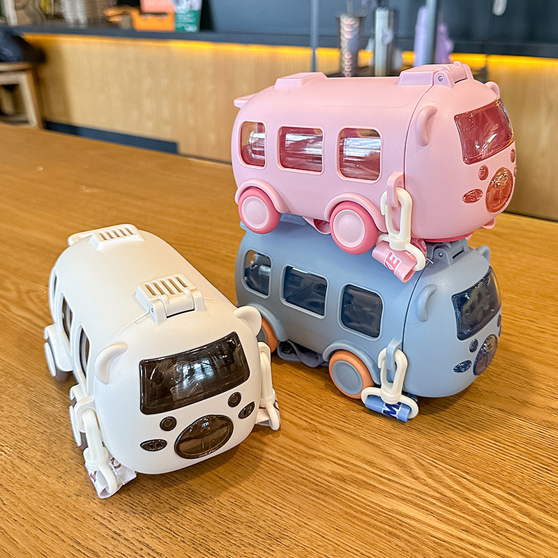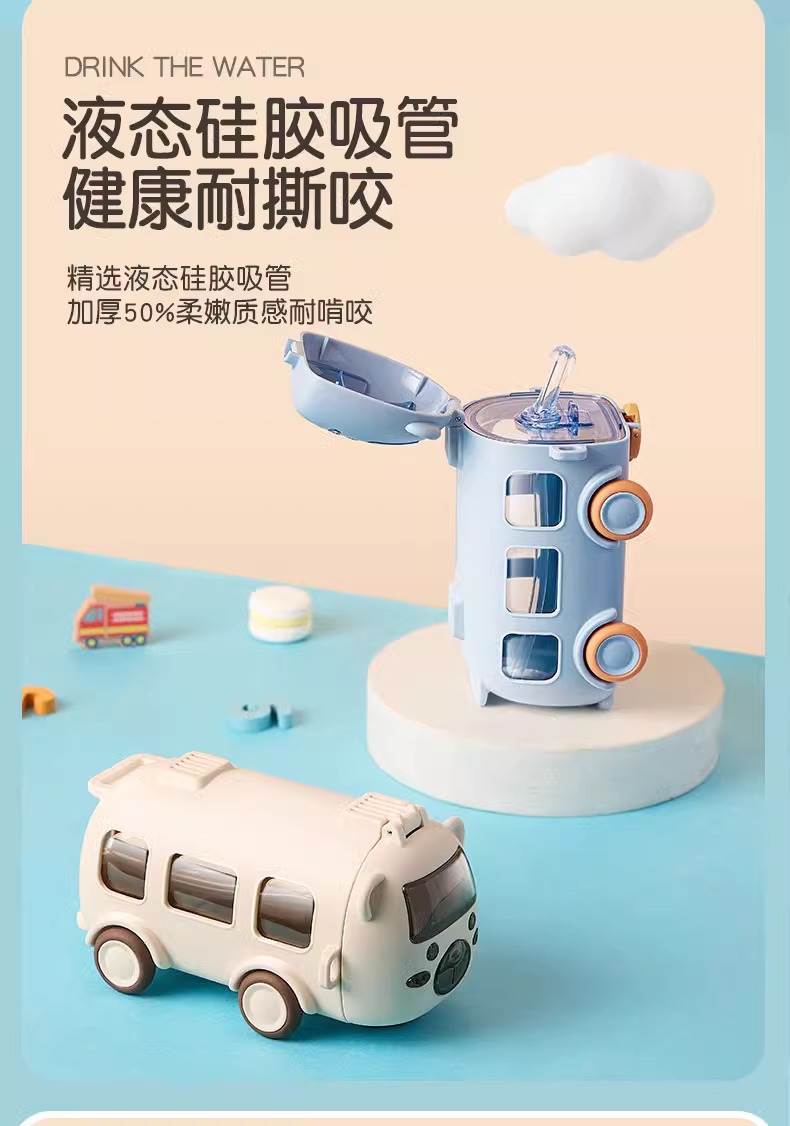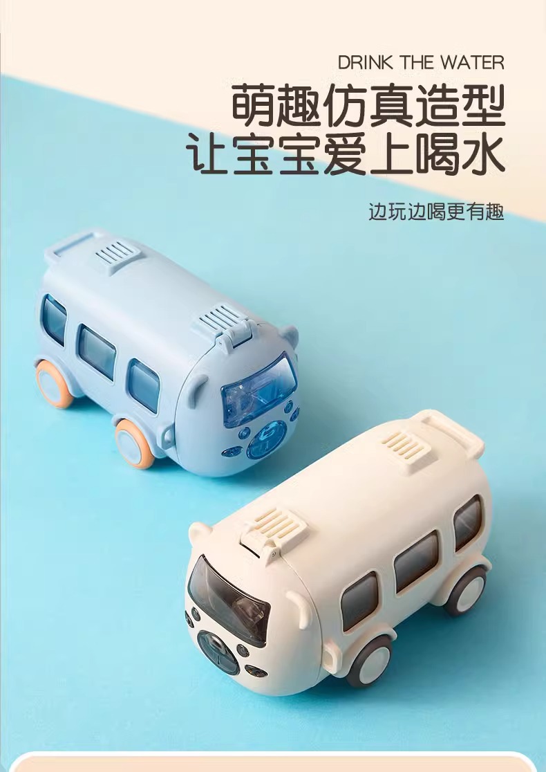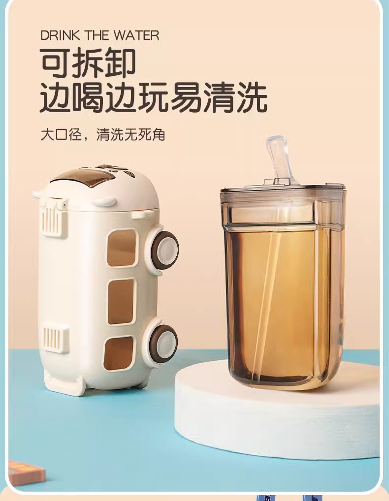 아기 버스 자동차 어린이 장난감 물 컵 높은 색상 값 플라스틱 작은 물 컵 빨대 귀여운 물 컵 도매스토어 가기
