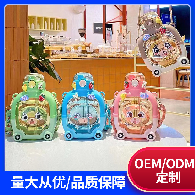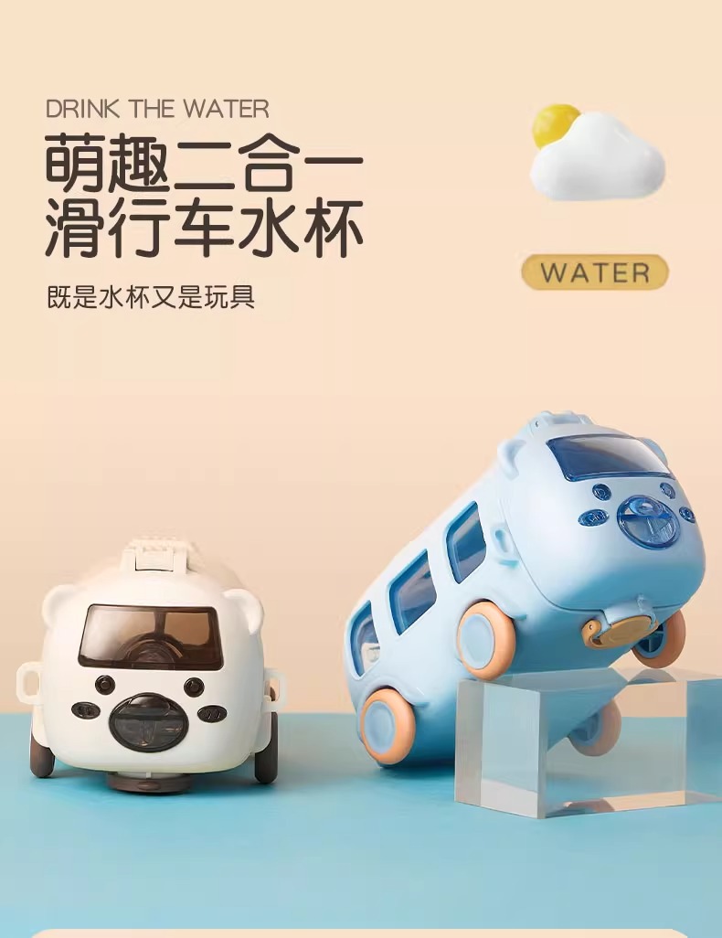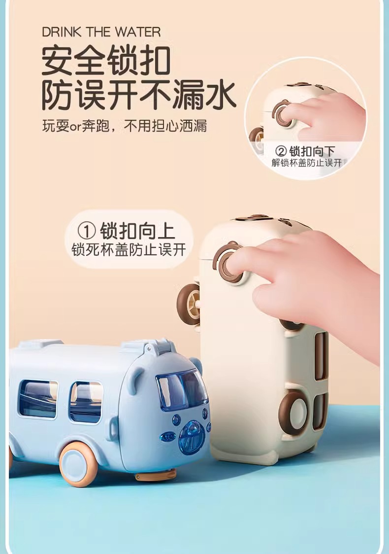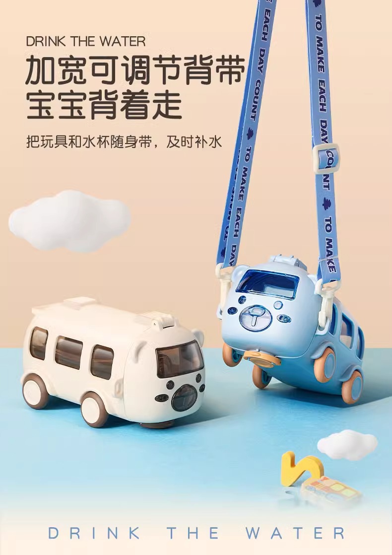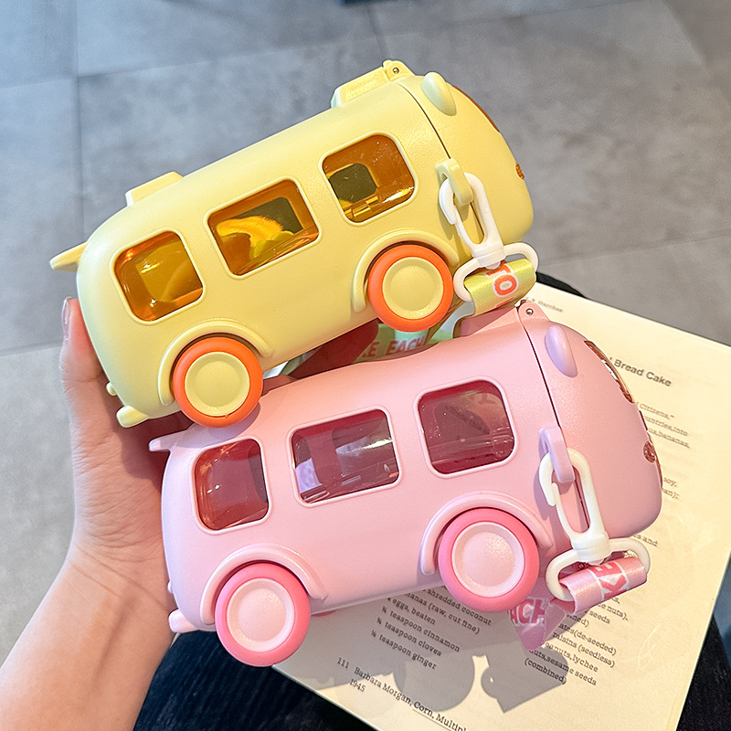 아기 버스 자동차 어린이 장난감 물 컵 높은 색상 값 플라스틱 작은 물 컵 빨대 귀여운 물 컵 도매스토어 가기