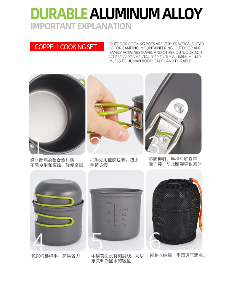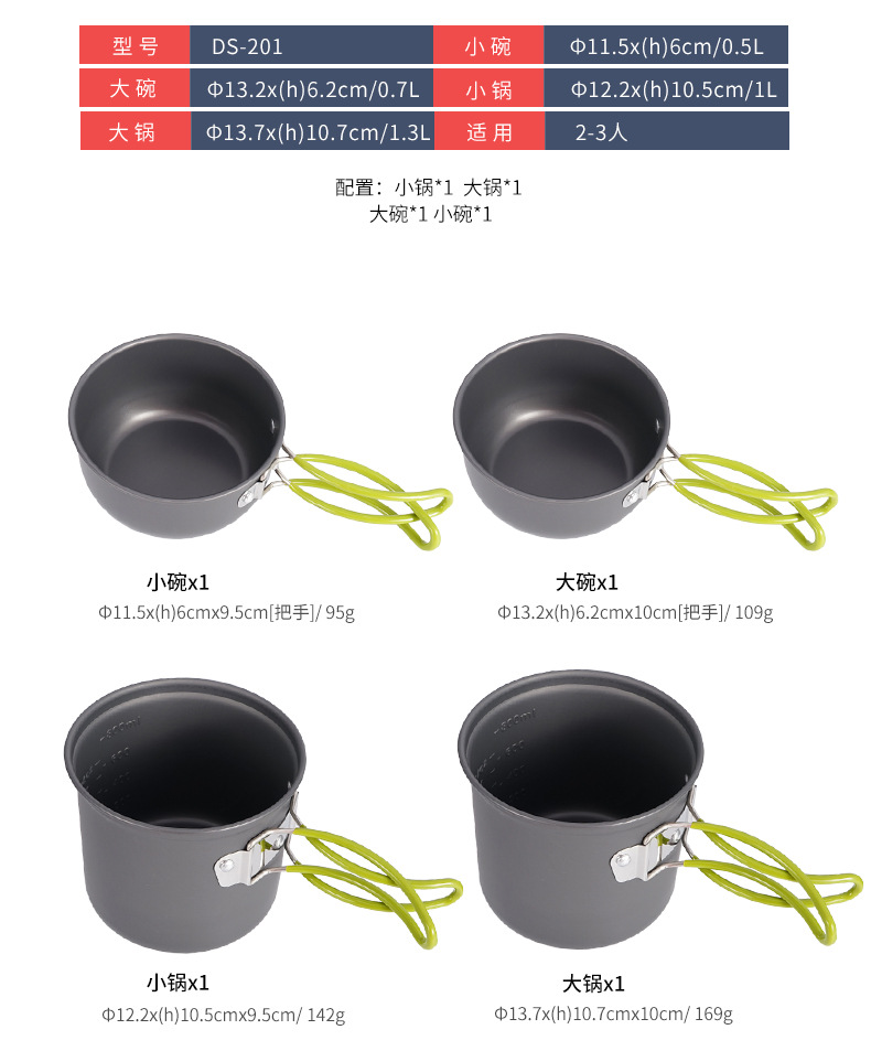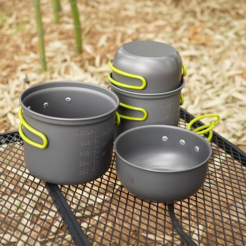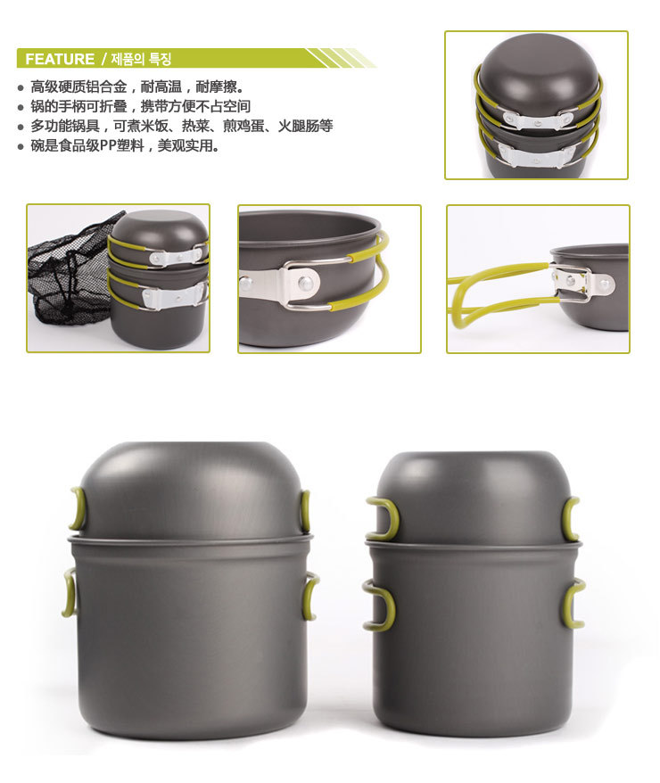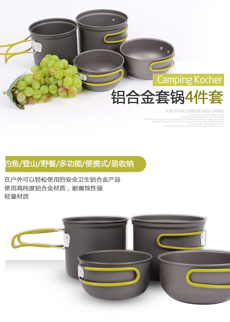 야외 용품 캠핑 하이킹 하드 알루미나 2-3 인 세트 포트 휴대용 4 피스 세트 조리기구 세트 조합스토어 가기