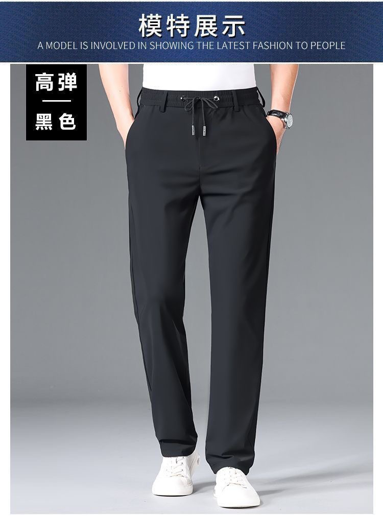 여름 아이스 실크 스트레치 중년 및 노인 아빠를위한 남성용 캐주얼 긴 바지 탄성 허리 스트레이트 바지 작업 바지스토어 가기
