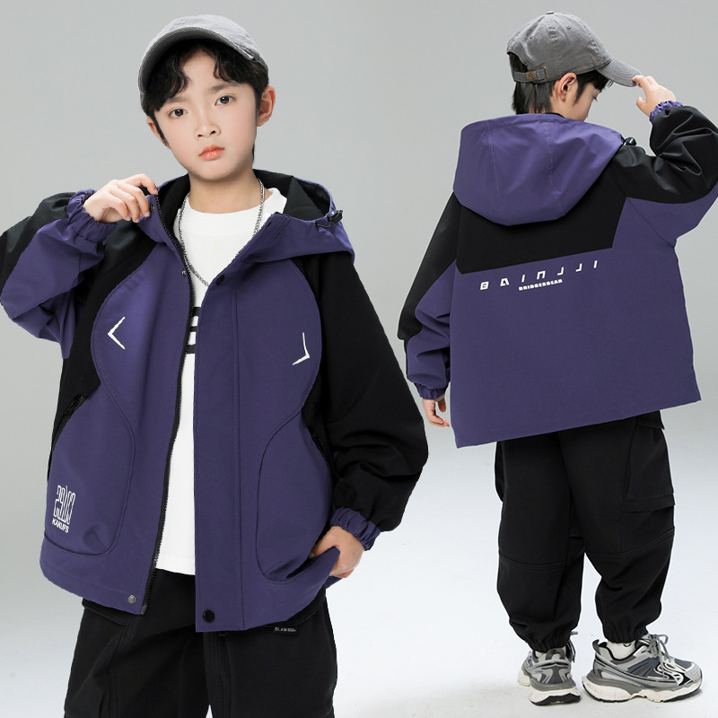 아동복 소년 코트 봄과 가을 스타일 충전 옷 2025 새로운 봄 큰 어린이 소년의 봄 옷 서양식 탑