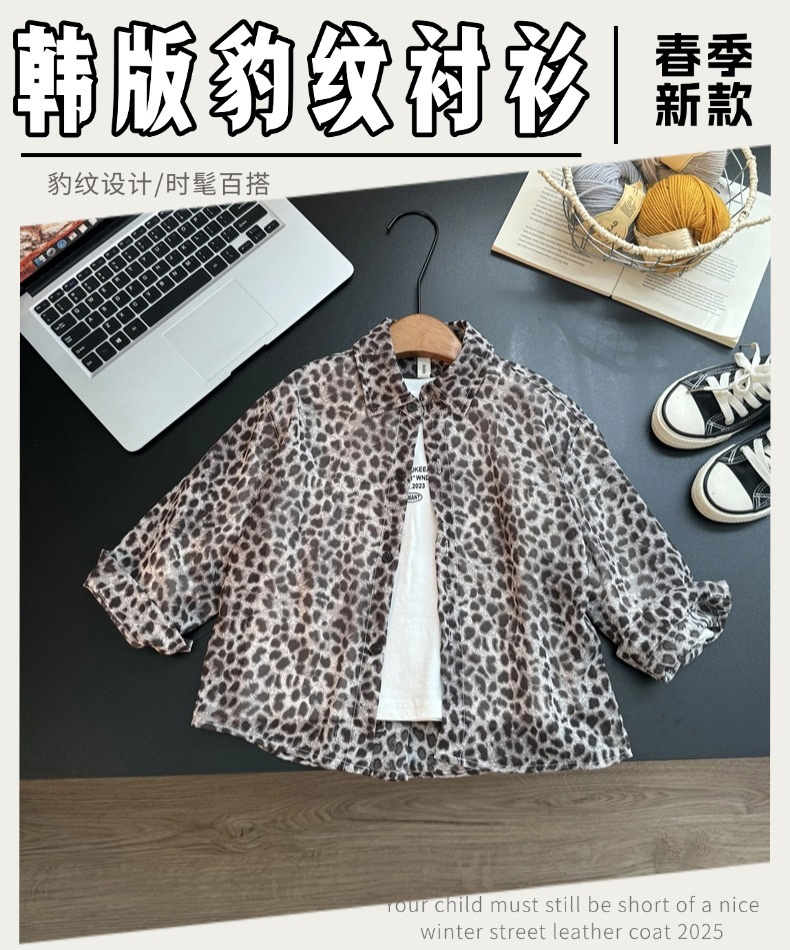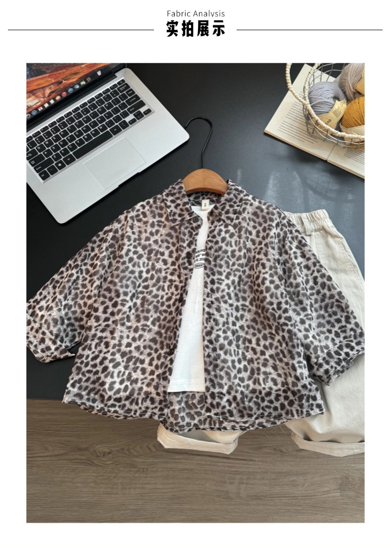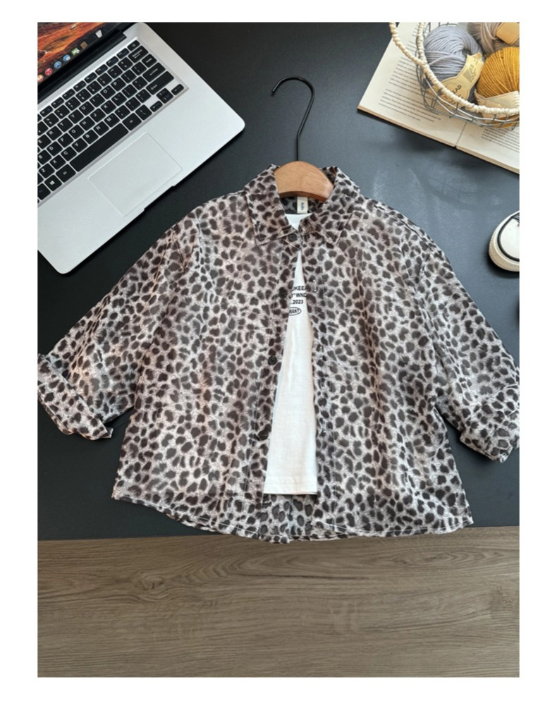 어린이 표범 인쇄 셔츠 여름 새로운 캐주얼 긴팔 재킷 어린 소년 태양 보호 쉬폰 셔츠 얇은 유행