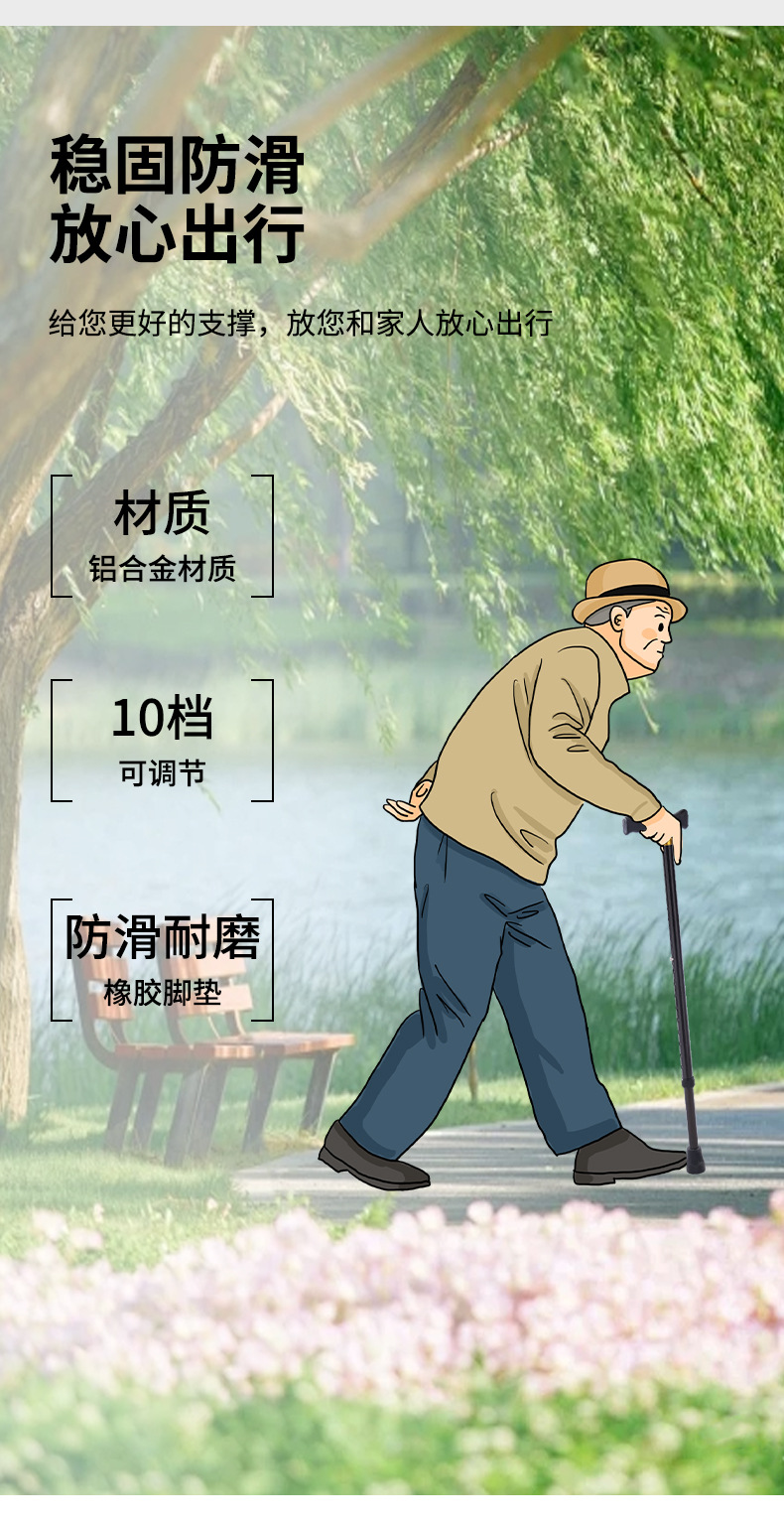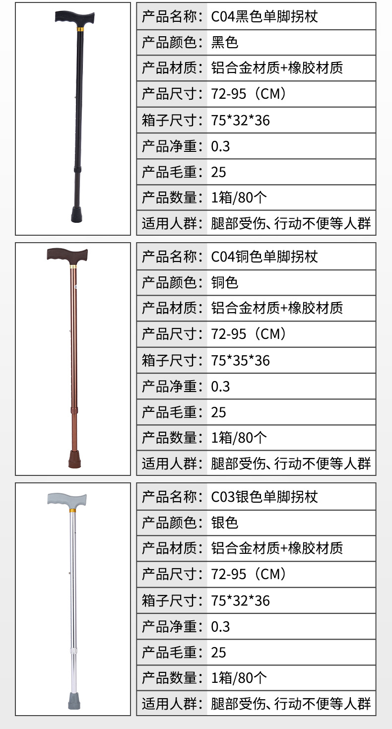 노인 장애인을위한 도매 두꺼운 한쪽 다리 목발은 노인을위한 조정 가능한 하이킹 스틱을 재고 걷는 목발을 보조했습니다.스토어 가기