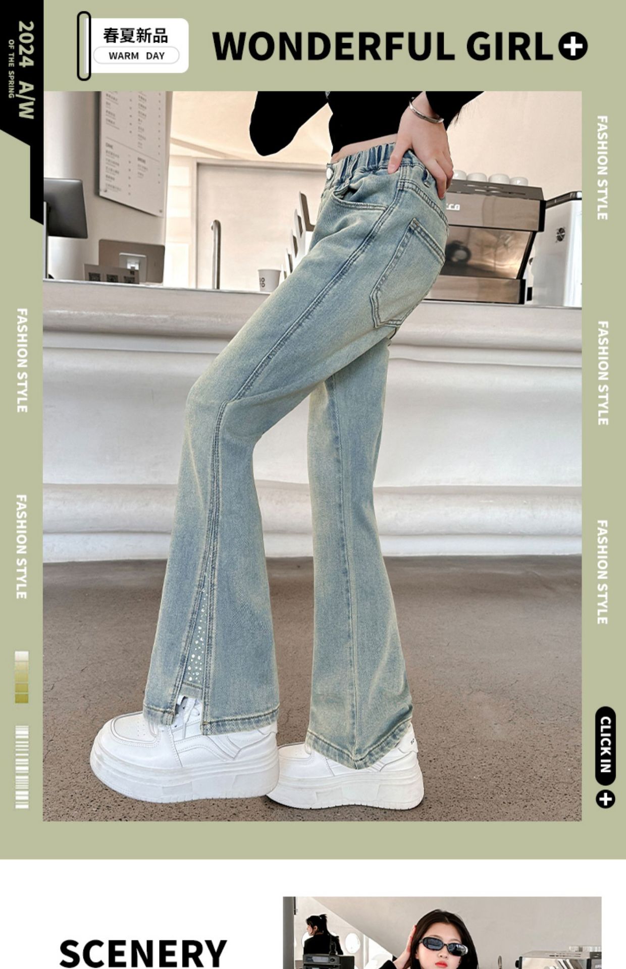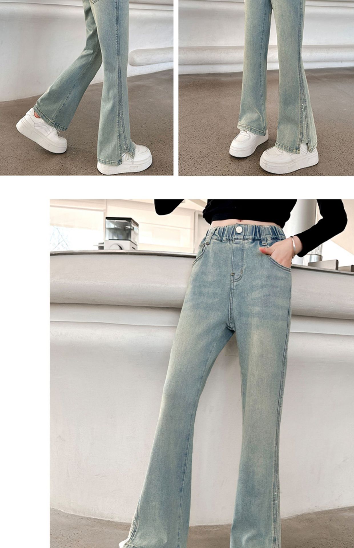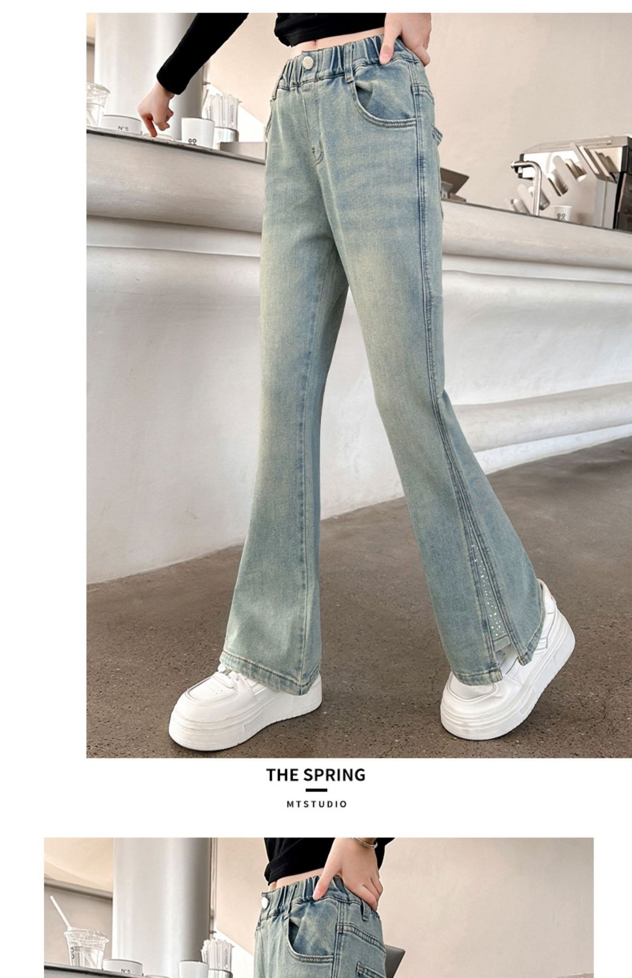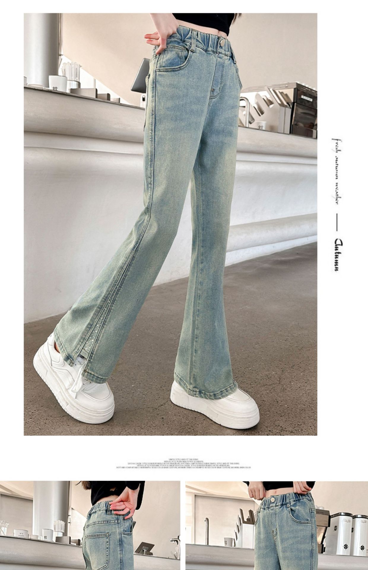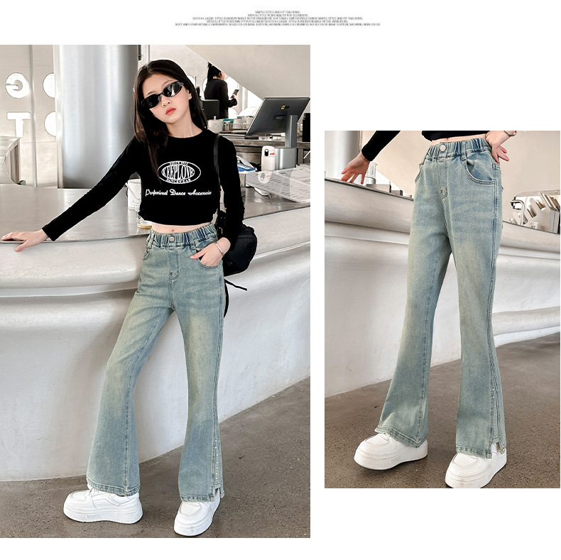 소녀 바지 어린이 봄과 가을 새로운 여자 어린이 의류 소녀 짠 바지 캐주얼 데님스토어 가기