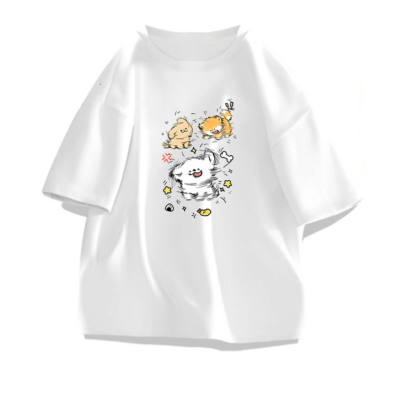 여름 새 스타일 코튼 반팔 티셔츠 남성과 여성의 홍콩 스타일 인쇄 트렌디 올 매치 Ins 티셔츠 공장 국경스토어 가기