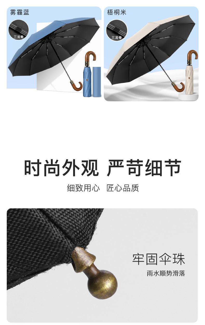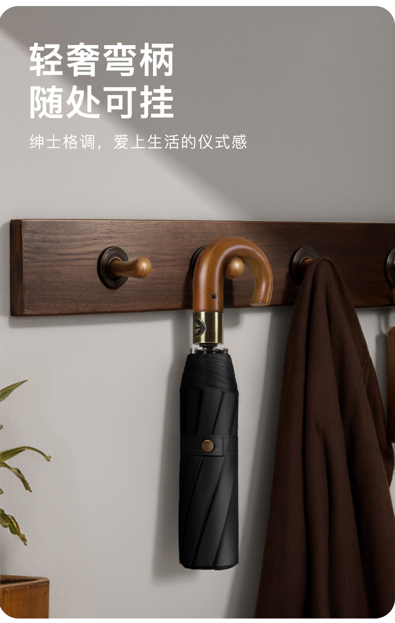 원목 곡선 손잡이 접이식 자동 우산, 비가 오나 눈이 오나, 비즈니스용 70% off 우산, 확대 및 강화된 내풍성, 차양 우산, 로고 인쇄 가능스토어 가기
