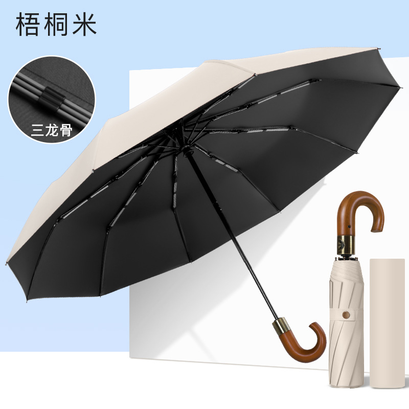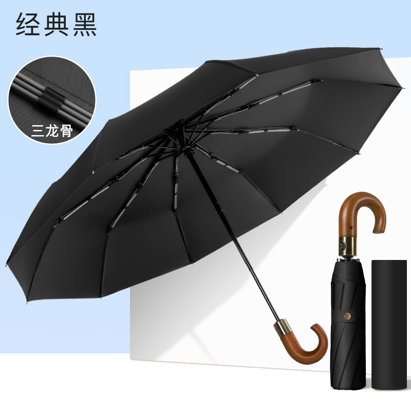 원목 곡선 손잡이 접이식 자동 우산, 비가 오나 눈이 오나, 비즈니스용 70% off 우산, 확대 및 강화된 내풍성, 차양 우산, 로고 인쇄 가능