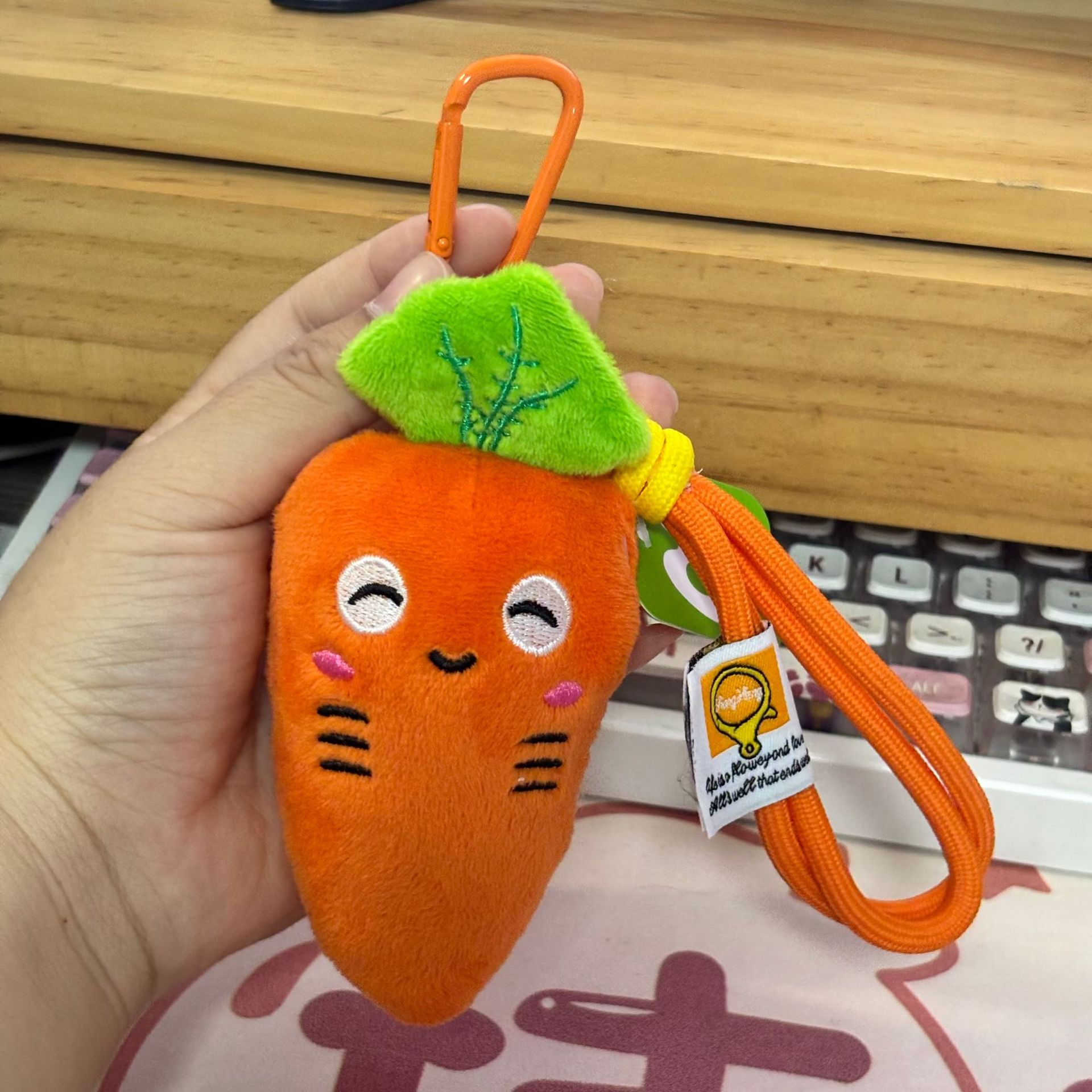 • 웃는 당근 + 오렌지색 카라비너 ​​끈