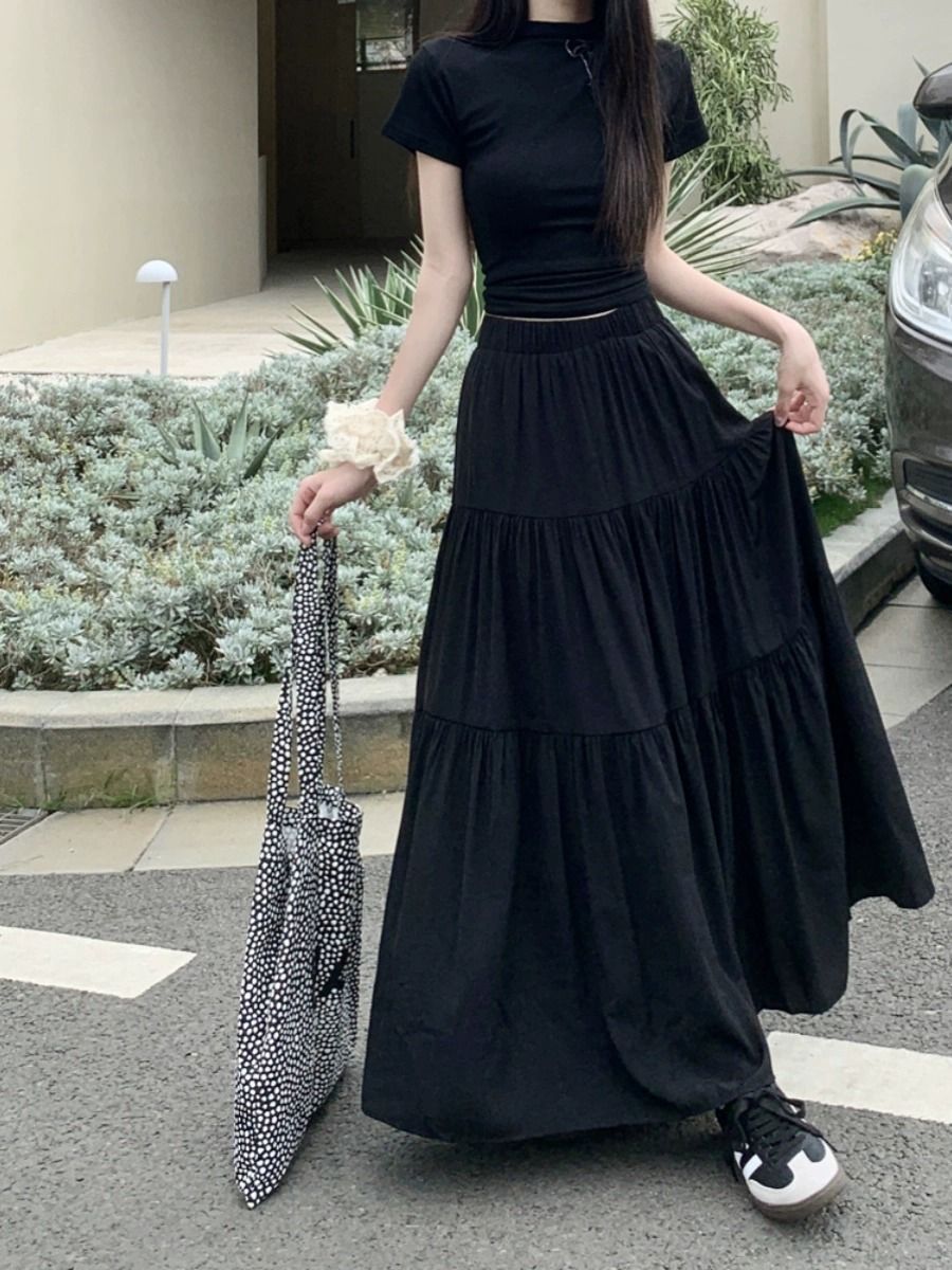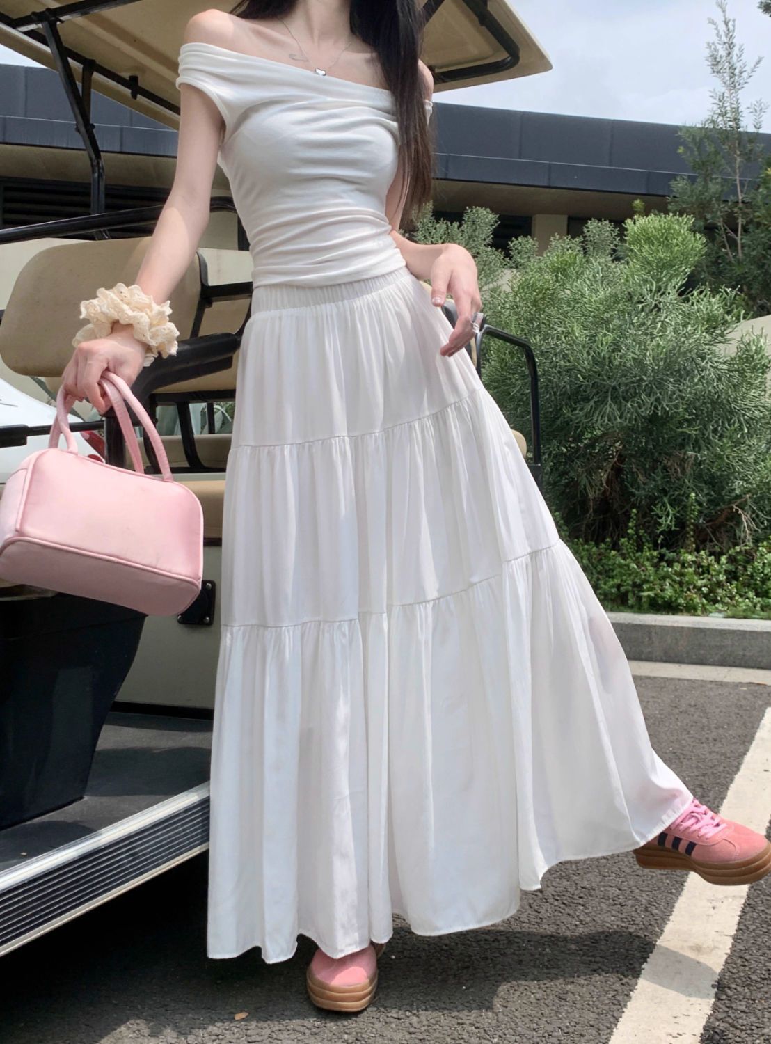 프랑스 스타일 화이트 스커트 여자 2025 년 봄과 여름 새로운 높은 허리 A 라인 스커트 슬리밍 모든 경기 중간 길이의 케이크 스커트스토어 가기