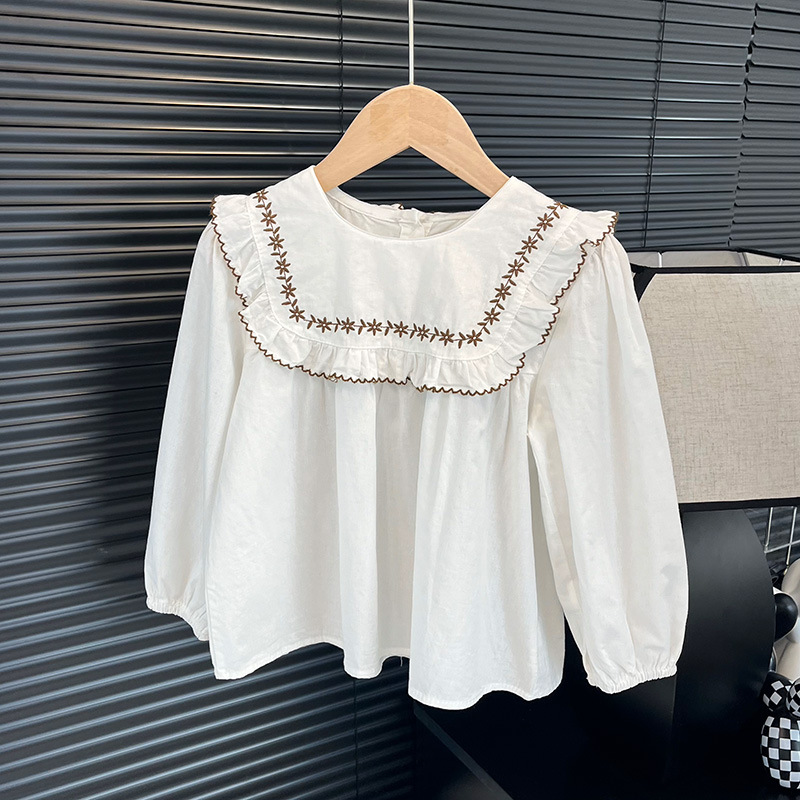 어린이와 소녀의 한국 스타일 봄과 가을 패션 올 매치 2 색 자수 꽃 셔츠 세련된 폭발적인 신선한 스타일 탑 트렌디스토어 가기