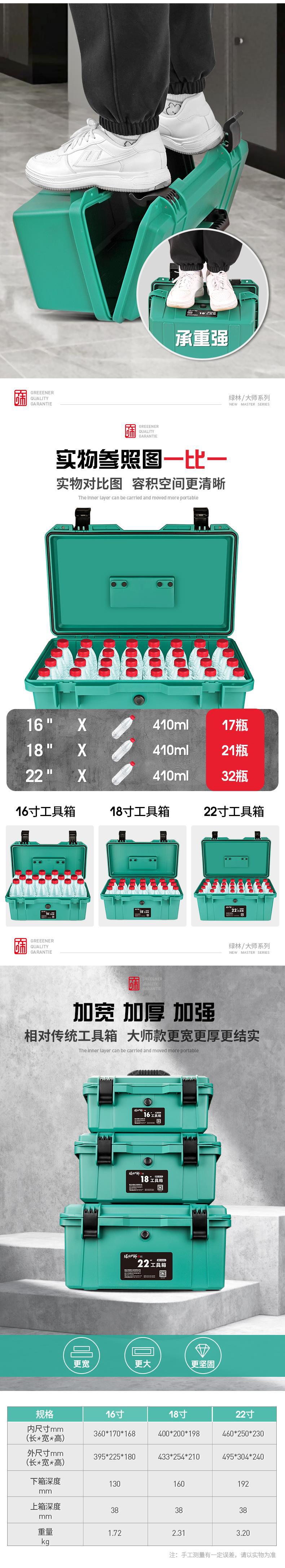• [무료 비밀번호 잠금] 16inch Green Forest Master 방수 도구 상자