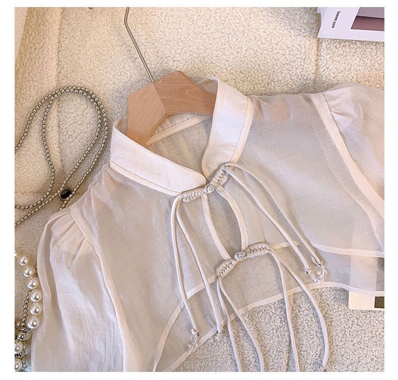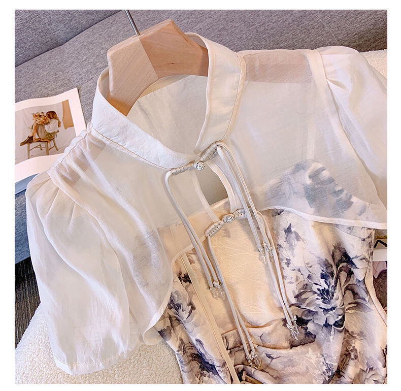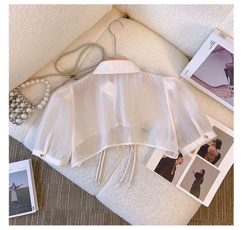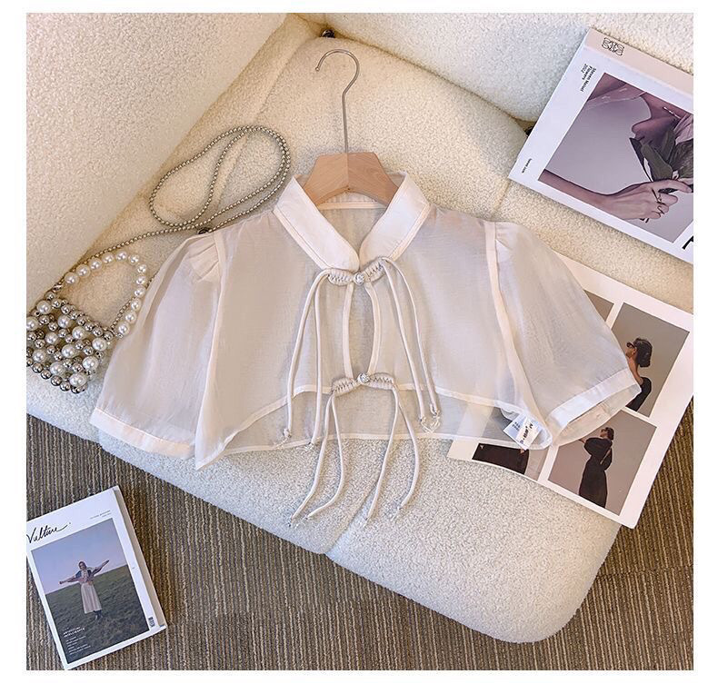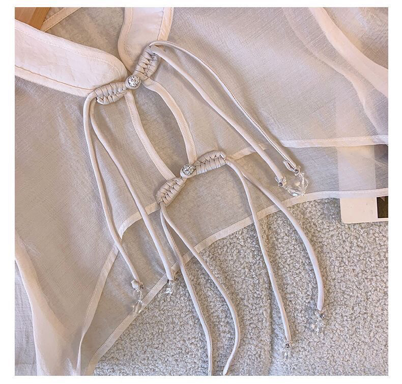 새로운 중국 스타일 아이스 실크 쉬폰 선스크린 카디건 여성용 얇은 목도리 여름 외부 포기 짧은 코트 블라우스