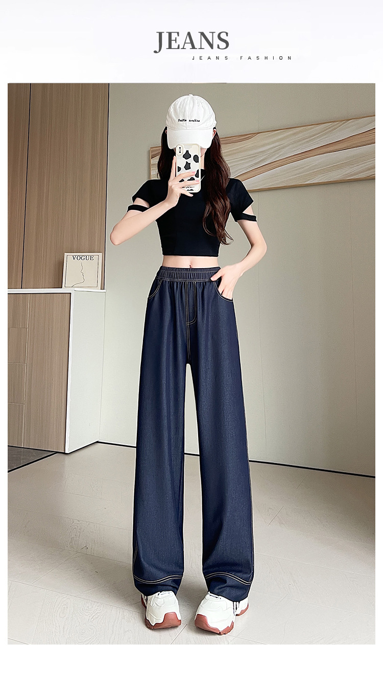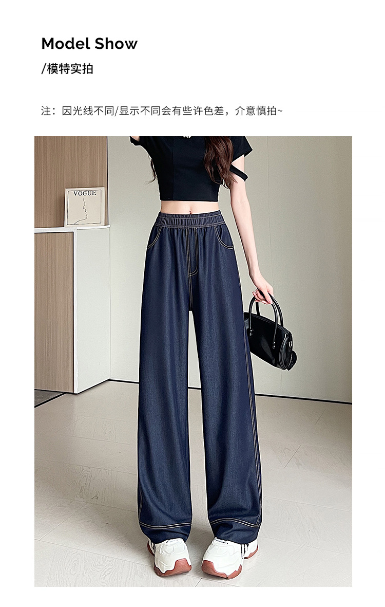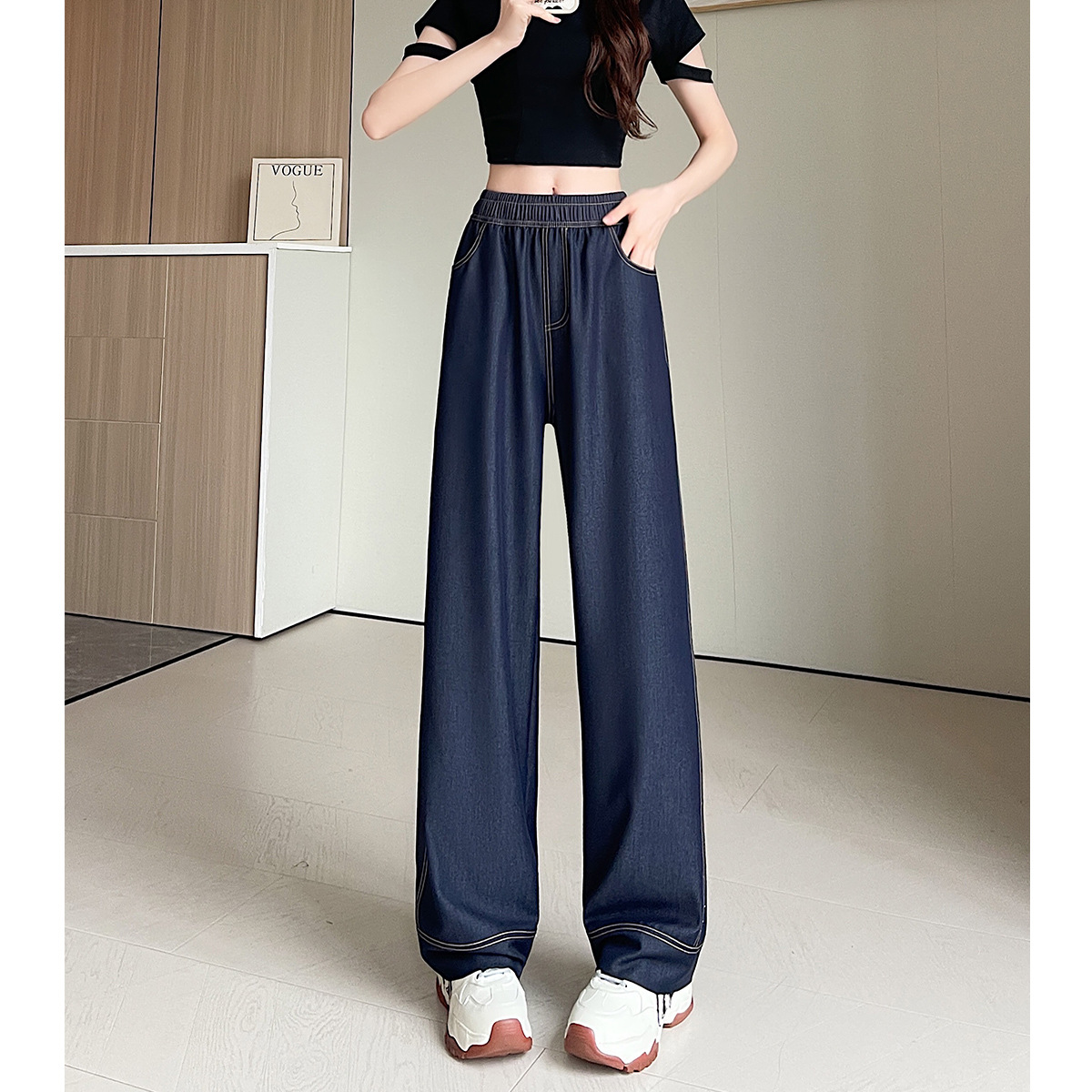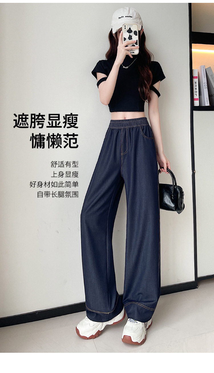 2025년 신상 여름 스타일 여성용 끈 없는 캐주얼 텐셀 데님 바나나 팬츠, 대형 사이즈 하이웨이스트 스트레이트 드레이프 와이드 팬츠스토어 가기