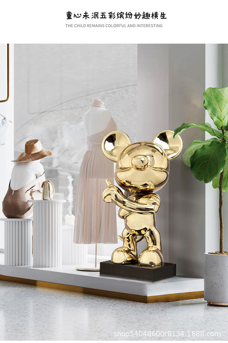 새로운 미키 거실 입구 창조적 인 홈 창조적 인 바닥 조각 수지 장식품 현대 빛 럭셔리 클럽 장식스토어 가기