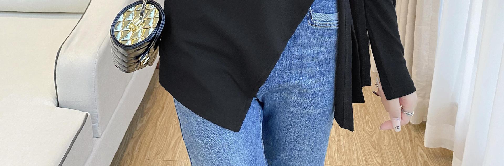 긴 소매 티셔츠 봄과 가을 디자인베이스 셔츠 단색 틈새 분할 우아한 슬림 블랙 불규칙한 탑 여성스토어 가기