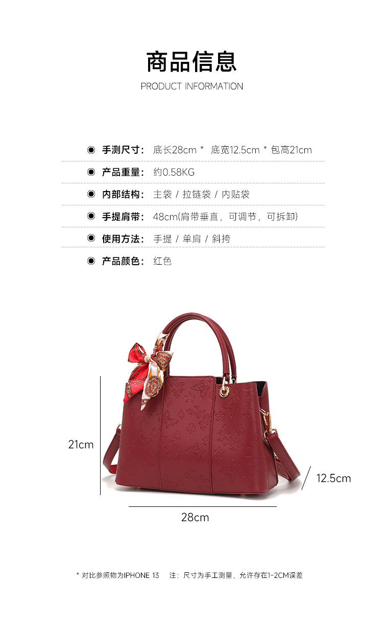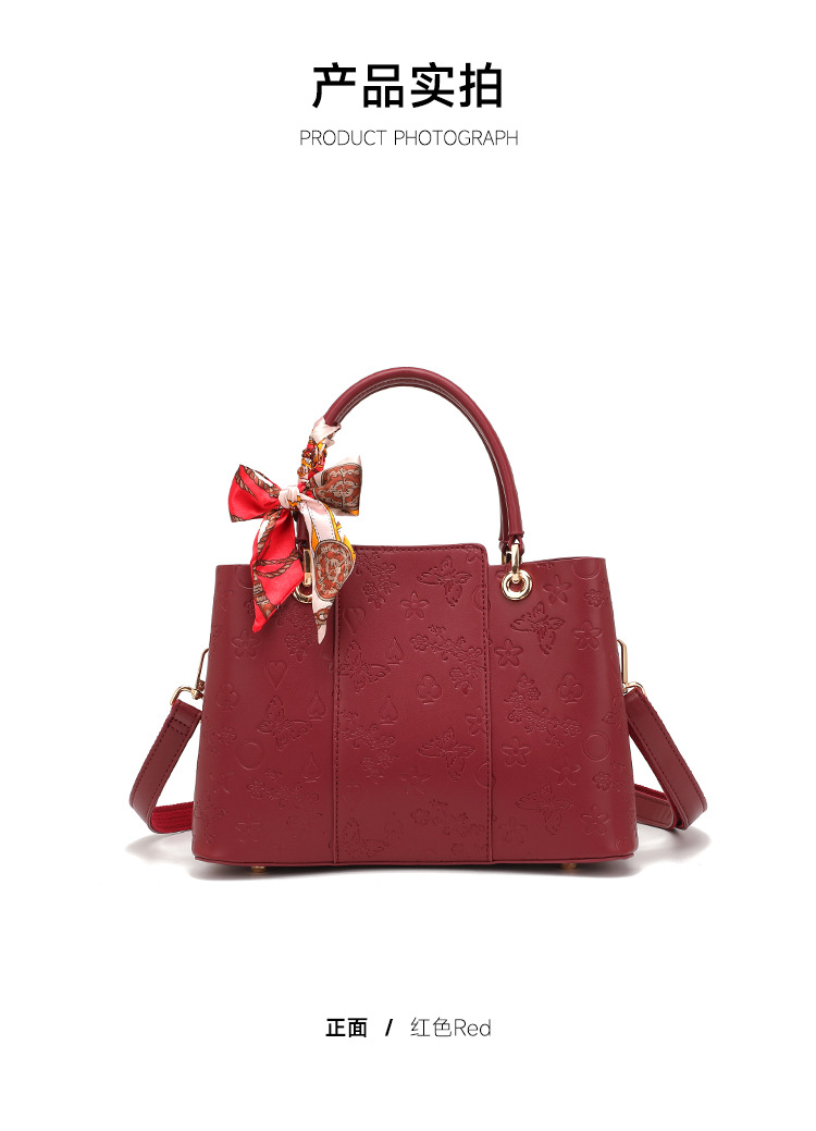 2025 새로운 웨딩 핸드백 어머니 가방 양각 나비 빨간 가방 통근 어깨 크로스 바디 가방 시어머니